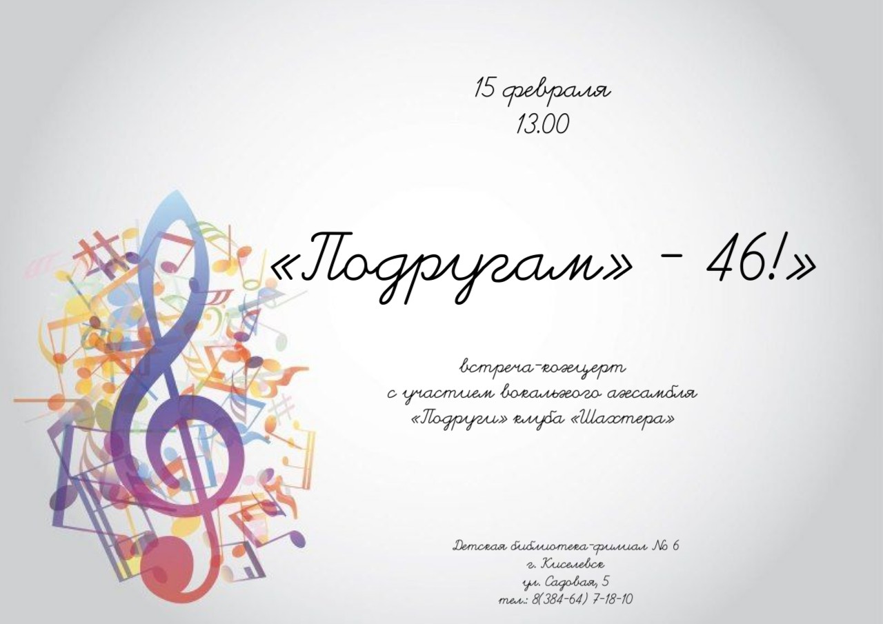 Приходите и поддержите талантливых вокалисток! Вас ждет незабываемый вечер, наполненный душевными песнями и интересными рассказами. Это уникальный шанс познакомиться с творчеством коллектива, который на протяжении многих лет радует жителей Киселевска своим искусством.