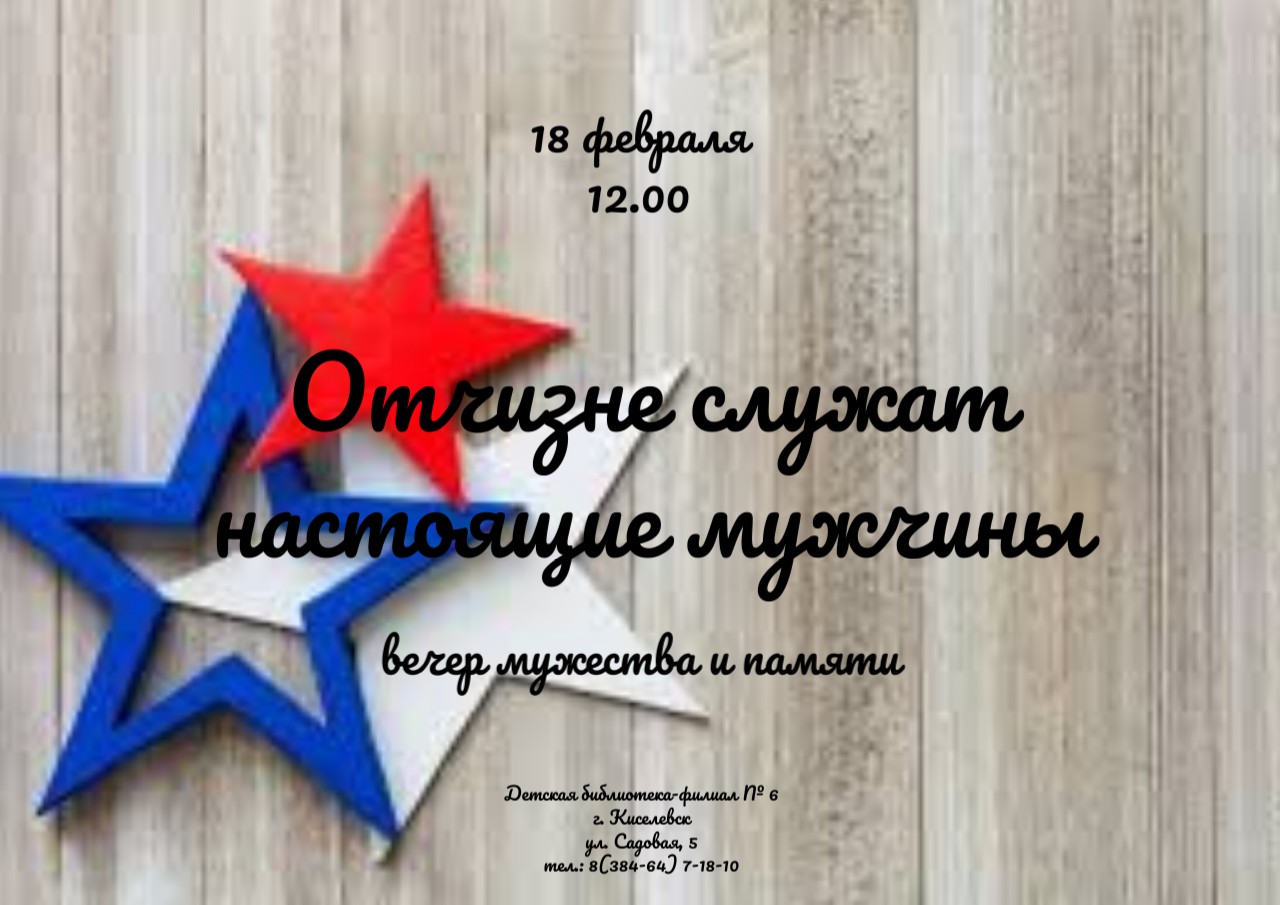 Все желающие приглашаются на особенный вечер, посвященный теме защиты Отечества. Участники отправятся в путешествие сквозь века, вспоминая о героях разных эпох – от легендарных богатырей, чьи имена вошли в предания, до отважных воинов, защищавших Россию в самые трудные времена. Можно будет окунуться в историю, осмыслить истинные ценности, которые всегда были важны для российского народа. Гостей мероприятия ждут проникновенные стихи и песни, которые тронут душу, а также фрагменты культовых отечественных фильмов, правдиво рассказывающих о цене подвига и самоотверженности. На книжной выставке будет представлена литература, которая поможет глубже понять суть войны, долга и несгибаемой силы духа, вдохновляя на доблесть и преданность Родине.