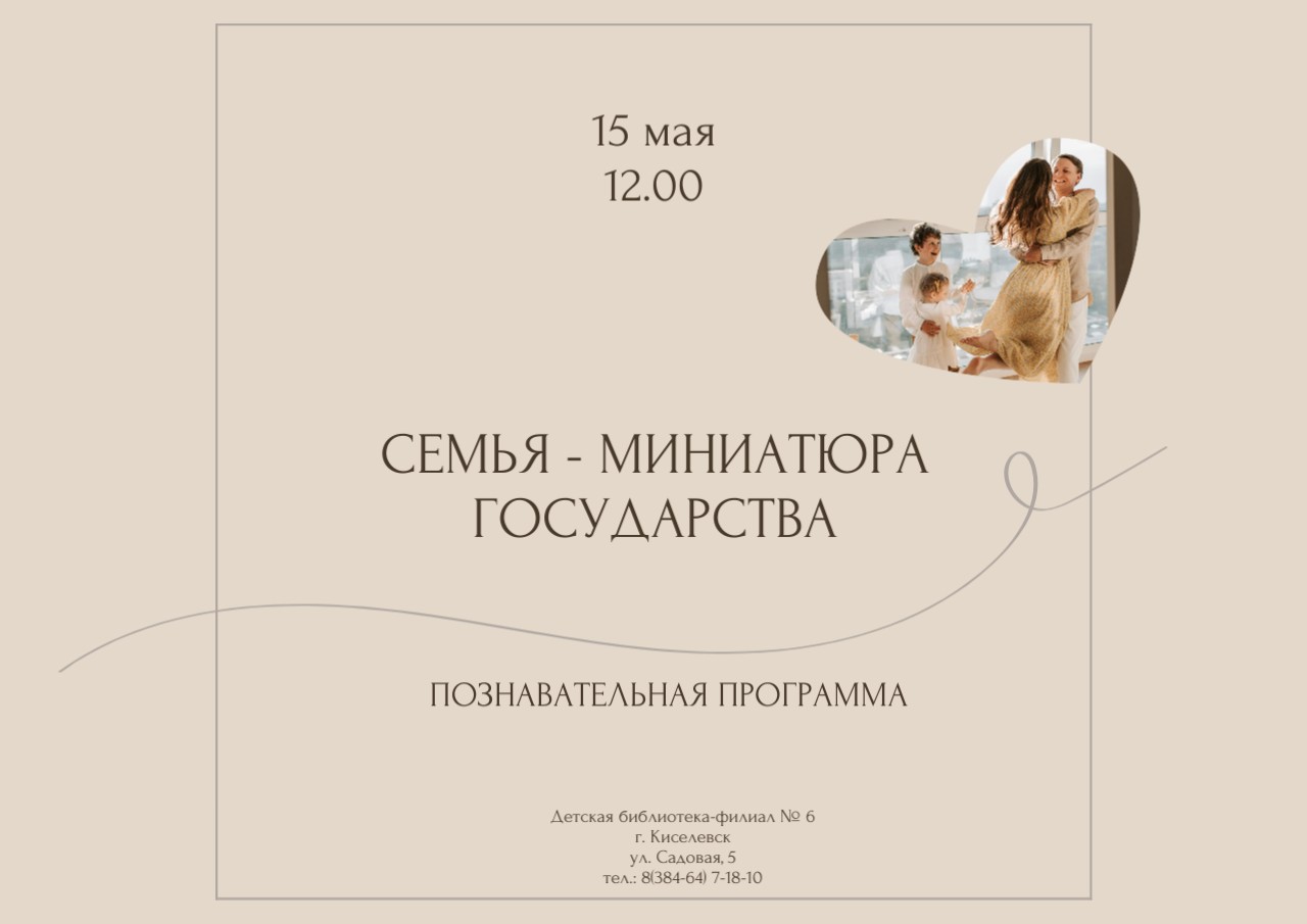 В преддверии Международного Дня семьи библиотека распахнет свои двери для всех, кто готов отправиться в увлекательное путешествие в мир знаний и душевных бесед. Всех желающих ждет познавательная программа «Семья – миниатюра государства», где чтение и искусство диалога превратятся в настоящее приключение.