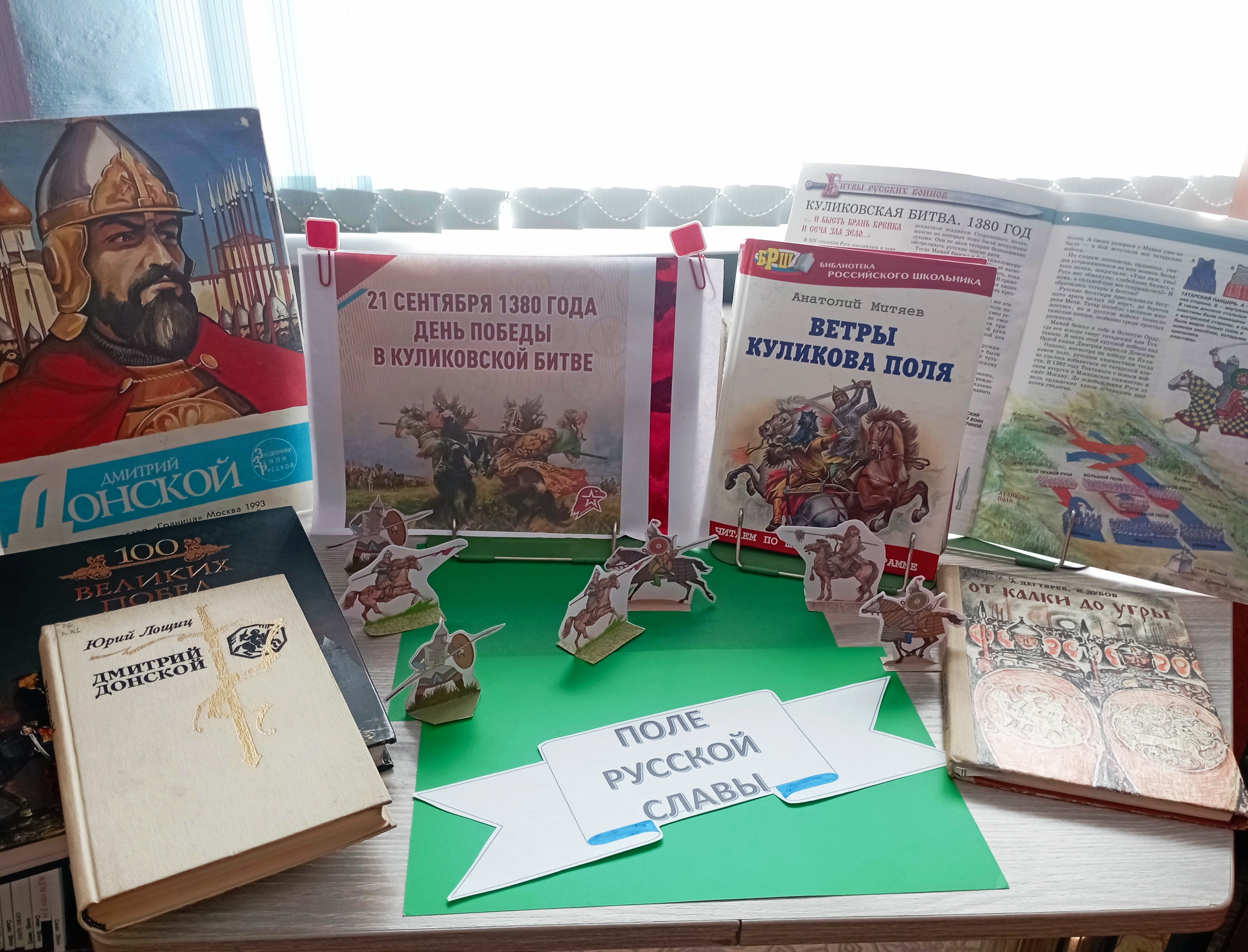 В завершение участникам мероприятия был представлен краткий обзор книжной выставки «Поле русской славы», на которой были представлены книги о ратных делах и подвигах русских князей, о Куликовский битве и личности Дмитрия Донского. Студентам также представилась возможность показать свои знания о героическом событии и ответить на вопросы блиц-викторины.