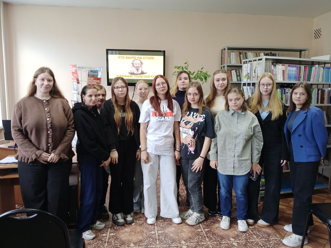 25 сентября специалисты библиотеки-филиала № 1 провели библиокафе «Что было на столе у графа Толстого?» в Киселёвском педагогическом колледже имени И. А. Михалёва для студентов, членов клуба «Юность».