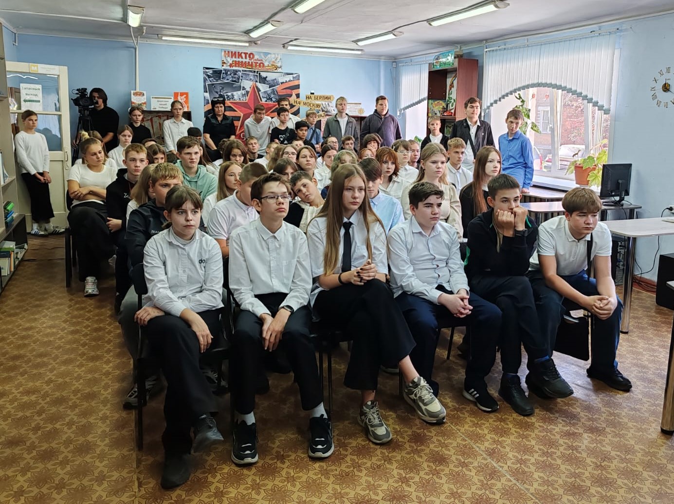 26 сентября в рамках программы «С любовью и верой в Россию» специалисты библиотеки-филиала № 1 провели встречу с участниками СВО «Одна страна! Одна семья! Одна Россия!» для старшеклассников школы № 33.
