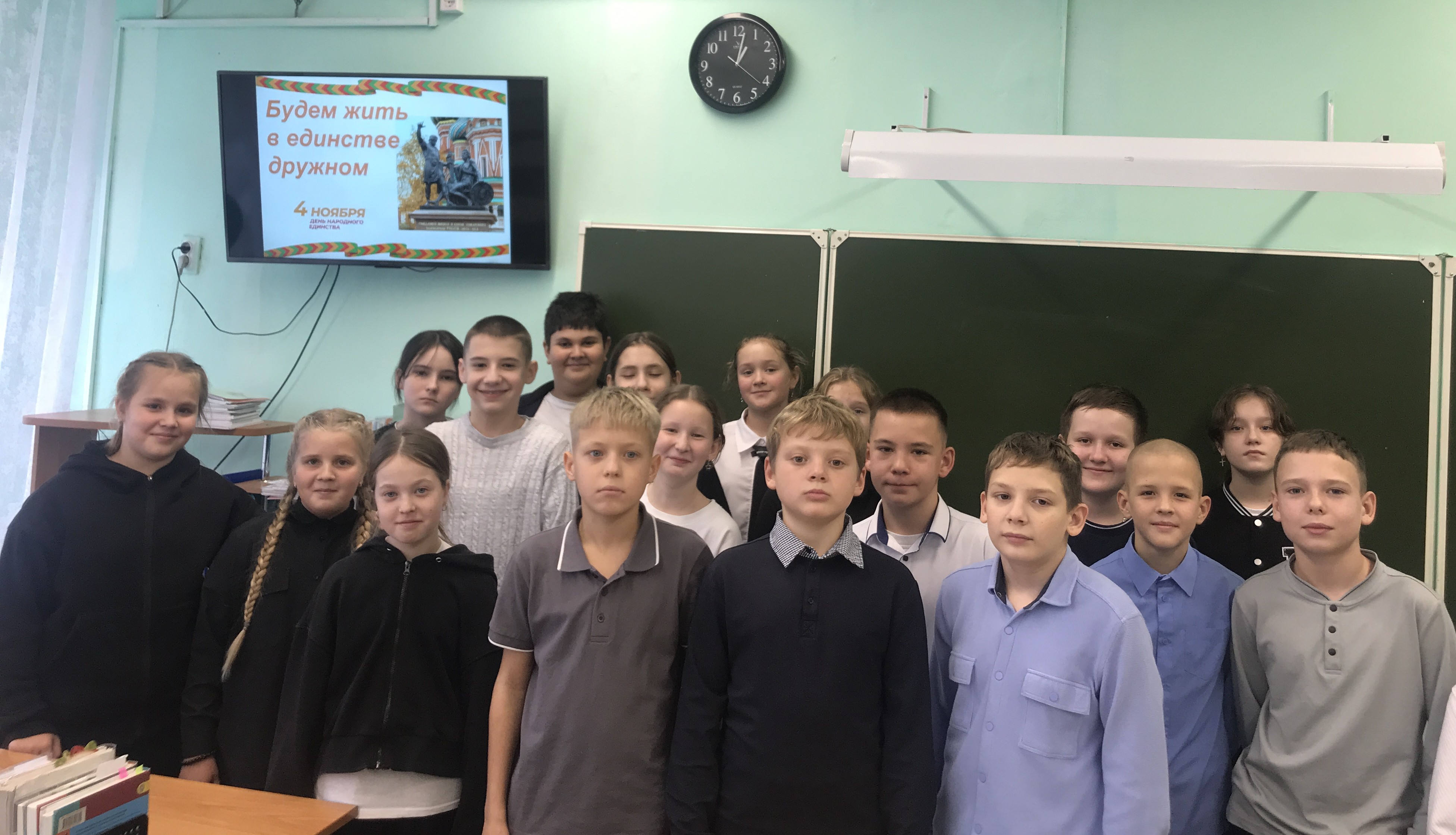 Шестиклассники приняли участие в различных конкурсах, требующих совместных усилий и взаимодействия. Собрав пазлы, ребятам нужно было угадать, какие достопримечательности изображены и рассказать о них. Расшифровали ребус с пословицей «Дружба народов – их богатство». Желающие поделились своими мыслями, как они понимают её смысл. Соотнесли изображения героев 1612 года с их именами. В завершение программы ребята высказали пожелания – учиться дружить, быть добрыми, защищать слабых и помогать старшим, чтобы наша страна была сильной державой и процветала.