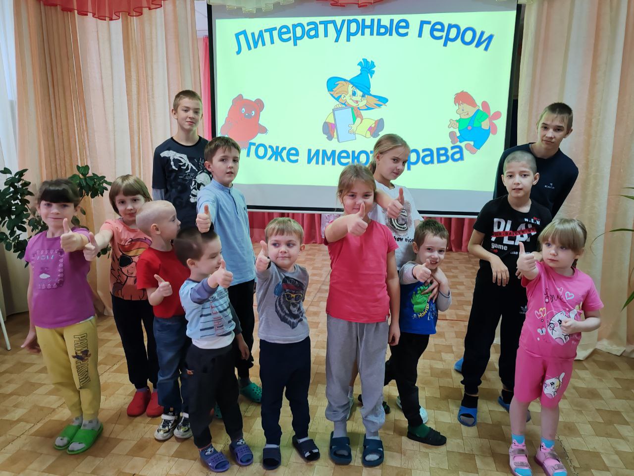 Дети активно участвовали в викторине, где им предстояло помочь литературным героям понять, какие права они нарушают. Например, одним из интересных моментов стало обсуждение персонажа Буратино, который не воспользовался своим правом на образование.
