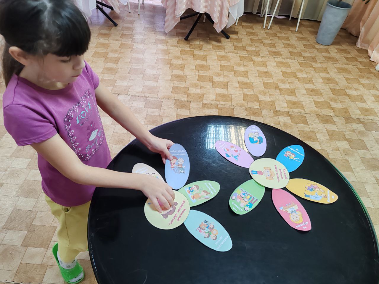 Библиотекарь также предложила участникам создать «ромашку прав и обязанностей», в которой каждый лепесток символизировал определенное право или обязанность.