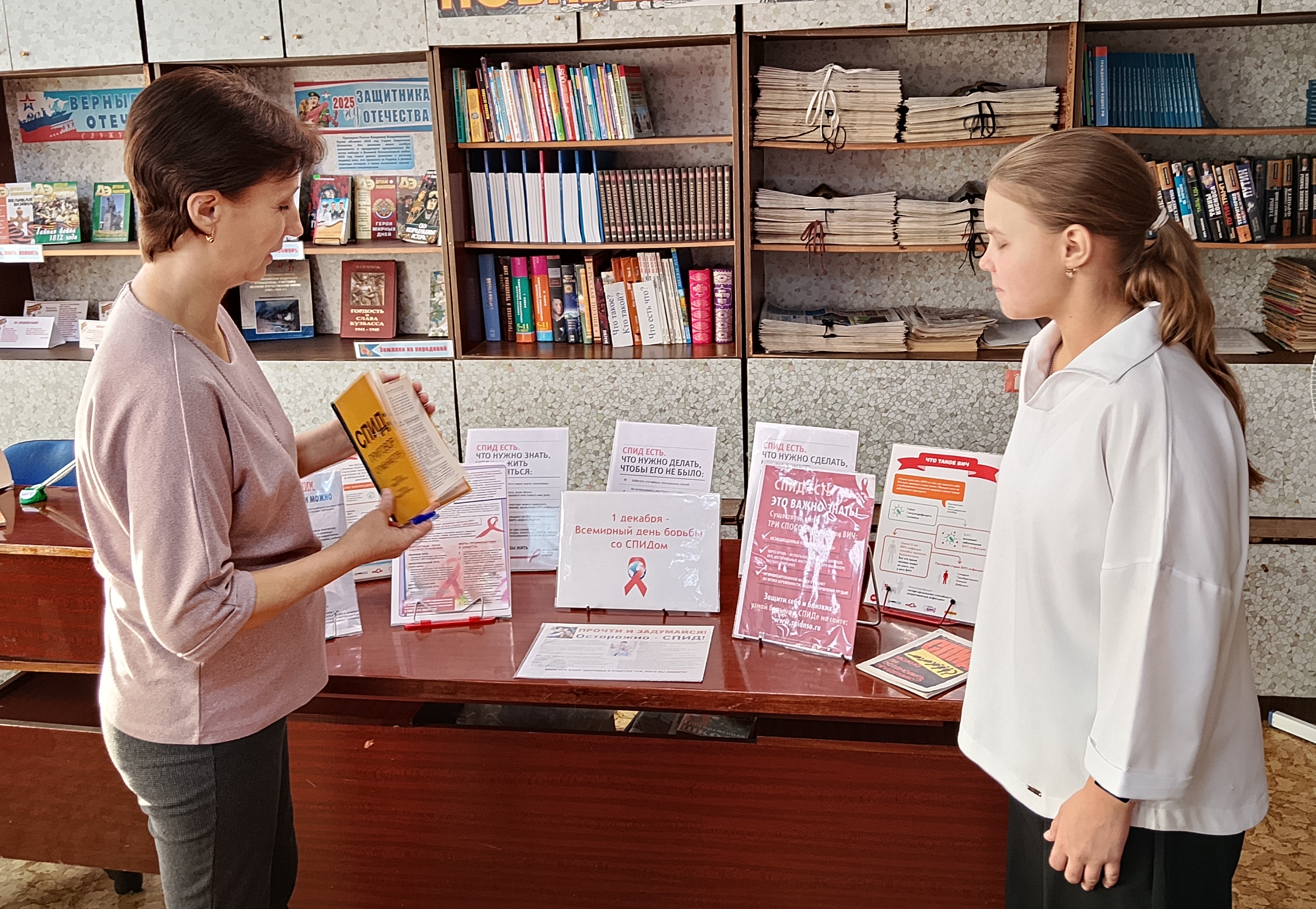 Библиотекари рассказали о значении Всемирного дня борьбы со СПИДом, а также об истории возникновения ВИЧ/СПИДа. Особое внимание было уделено символике этого дня – красной ленточке, которая стала символом борьбы с этой страшной болезнью. Далее старшеклассники посмотрели информативный видеоролик под названием «Правильные решения – все, что нужно знать о ВИЧ». В ролике были подробно объяснены основные аспекты, связанные с вирусом: его природа, пути передачи инфекции, стадии развития заболевания, а также меры профилактики. Важно было развеять мифы, связанные с ВИЧ, и обсудить, какая ответственность лежит на каждом из нас в свете этой проблемы. Школьники узнали, куда можно обратиться за помощью в случае необходимости.