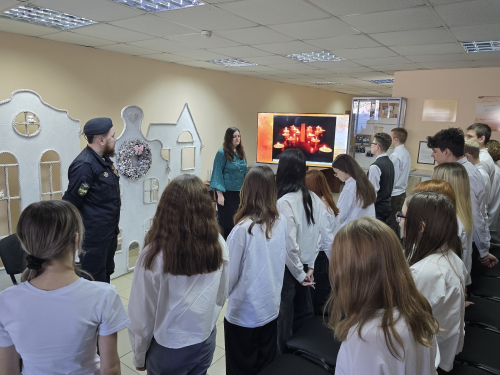 Особое внимание было уделено современным героям – участникам специальной военной операции, а личное присутствие и участие в беседе ее ветерана - Горшкова Александра Александровича наполняло атмосферу особой торжественностью. Почетный гость рассказал ребятам о том, как принял решение вступить в ряды защитников, поведал о чувствах, которые бушевали в душе в первые дни операции, открыл секрет, что помогало поддерживать боевой дух и придавало силы в зоне СВО. Участники встречи задавали вопросы герою и получали подробные ответы. На протяжении встречи звучали клипы патриотических песен. При полной тишине прошла торжественная минута молчания в память о тех, кто отдал жизни в борьбе за мир и покой в стране.
