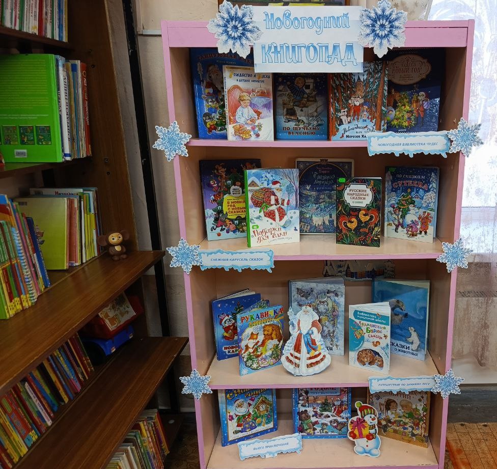 Книжная экспозиция «Снежная карусель сказок» закружит маленьких читателей в вихре любимых сказок русских и зарубежных писателей, напоминая о вечных ценностях добра и волшебства. Книжная экспозиция «Новогодний книгопад» – познакомит молодежь и подростков с целым калейдоскопом зимних историй.