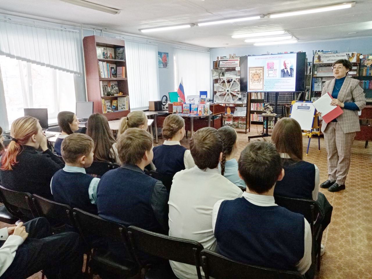 12 декабря ко Дню Конституции Российской Федерации и в рамках программы «С любовью и верой в Россию» специалисты библиотеки-филиала № 1 провели для старшеклассников школы № 11 правовой ликбез «Конституция – закон, по нему мы все живём».