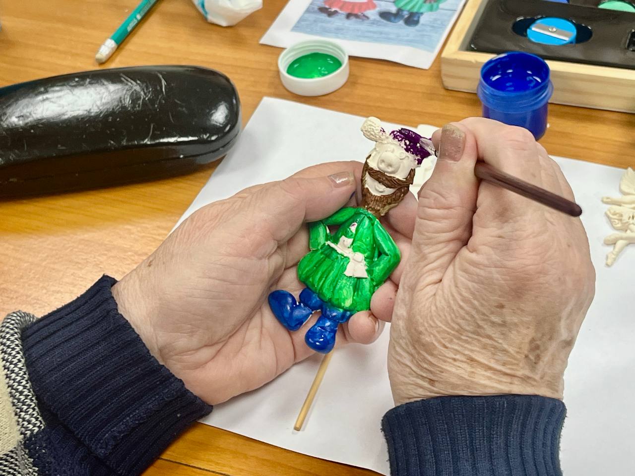 Под руководством библиотекаря участники с увлечением разукрашивали заранее приготовленные гипсовые заготовки: снеговиков, лошадок, персонажей известных мультфильмов «Падал прошлогодний снег», «Жил-был пёс».