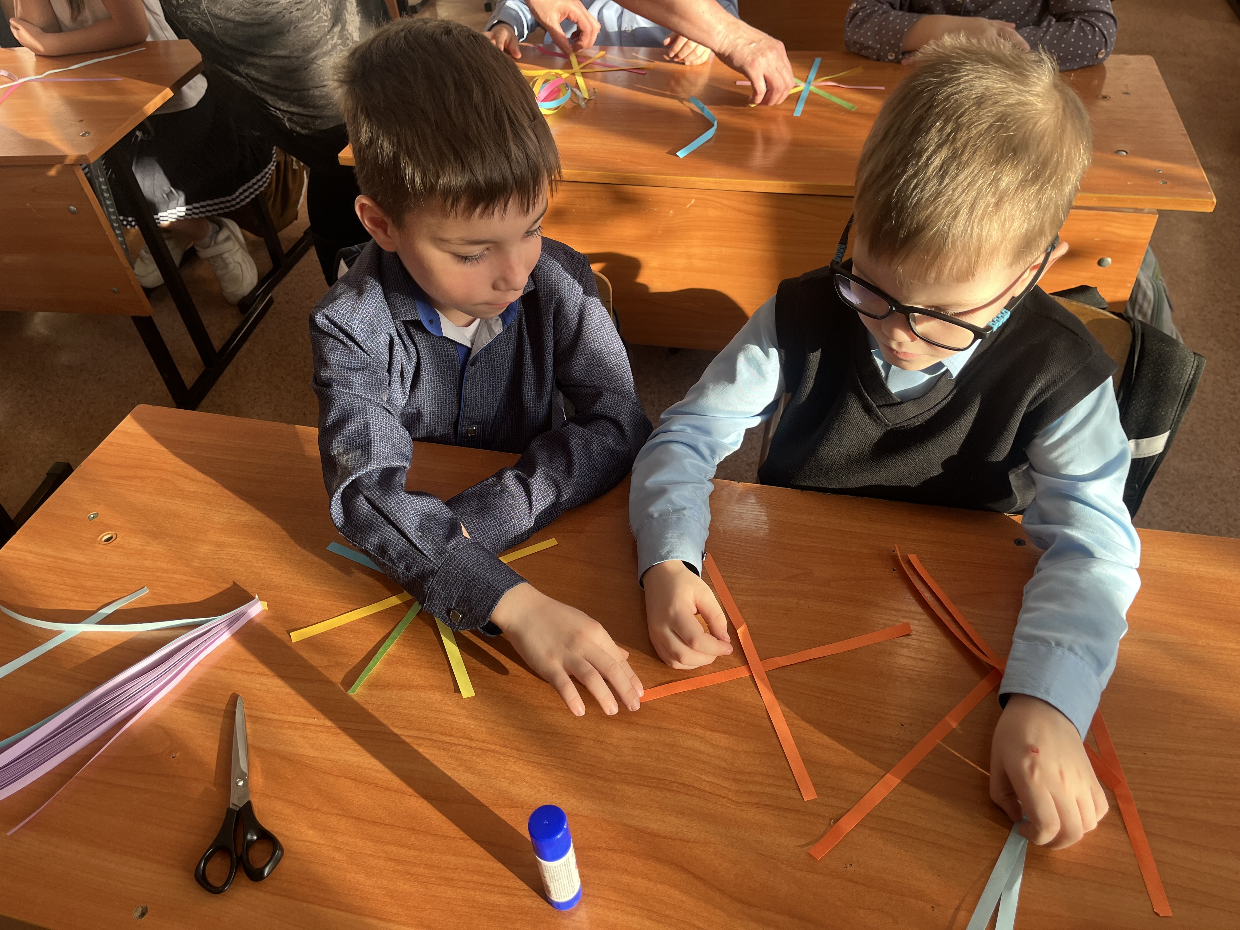 В практической части мастер-класса к ребятам присоединилась Оксана Витальевна Станкова, мама первоклассницы Александры. Под руководством библиотекарей, дети и семья Станковых совместно трудились, создавая новогодние фонарики из ярких полосок цветной бумаги. Каждый участник проявил фантазию, выбирая цвета для своей неповторимой новогодней игрушки. Время пролетело быстро, было весело, интересно и познавательно.