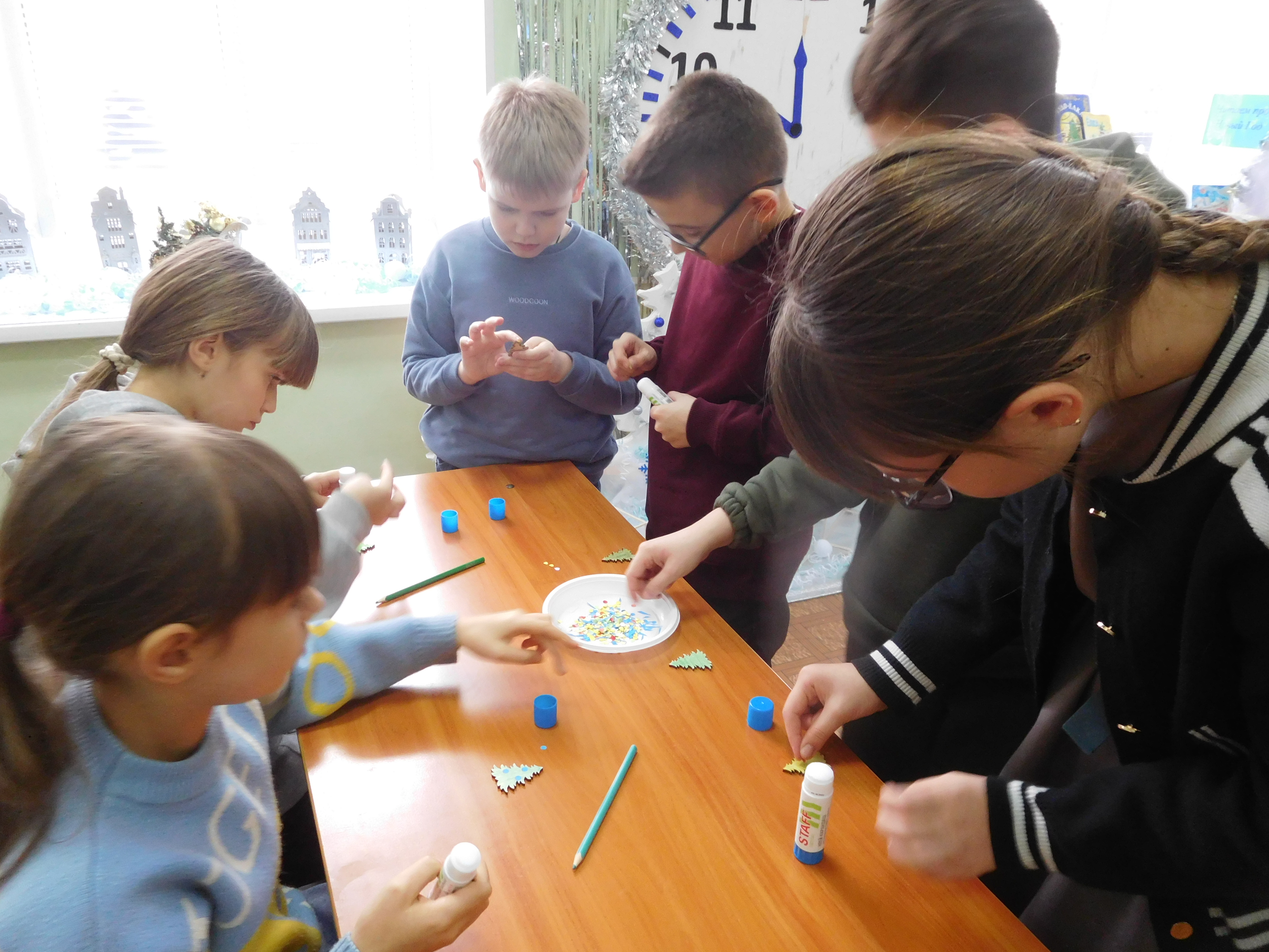 Для ребят были подготовлены увлекательные игры, зимние викторины и развлечения в честь празднования Нового года. Прекрасным дополнением к мероприятию стали просмотры фрагментов весёлых, новогодних мультфильмов и мастер-класс по украшению новогоднего сувенира – деревянной ёлочки. В завершение мероприятия все участники встали в Новогодний хоровод, посылая друг другу самые тепле пожелания.