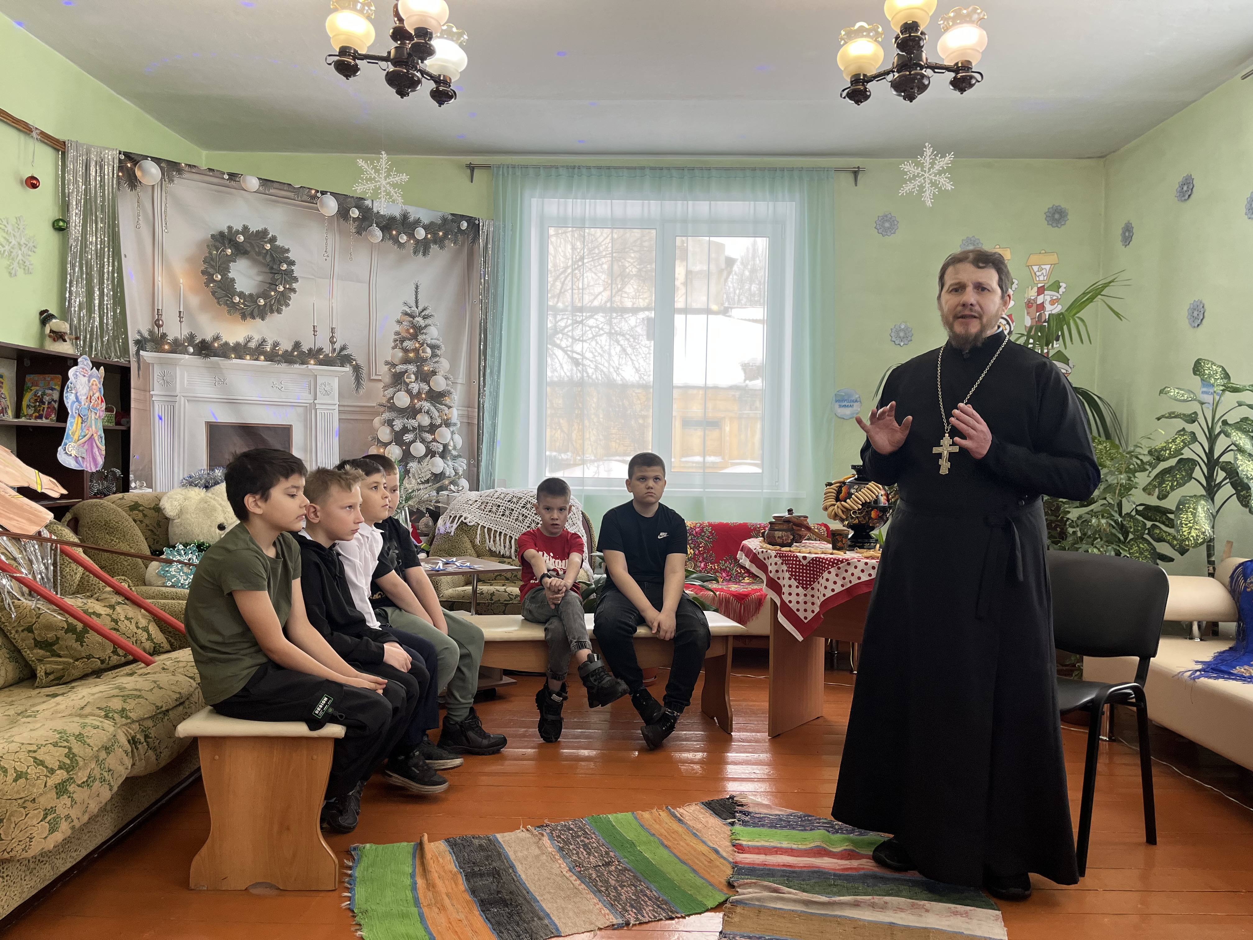 Перед мальчишками и девчонками выступил Андрей Корнев, представитель православной церкви. Его рассказ о Рождестве Христовом получился живым, доступным и по‑настоящему душевным. Священнослужитель последовательно раскрыл перед ребятами ключевые моменты праздника: кратко и образно пересказал евангельское повествование о рождении Иисуса Христа, объяснил духовный смысл торжества – одного из главных христианских праздников: рождение Спасителя, который пришёл в мир, чтобы принести людям любовь и прощение, символ надежды и добра для всех верующих. Отвечая на вопросы, гость посиделок познакомил ребят с народными и церковными традициями Рождества. Это пост как время подготовки к празднику, всенощное бдение и праздничная литургия в храмах, колядки и рождественские песнопения, семейный ужин в Сочельник, а также украшение дома символами Рождества, как звезда, ангелы, вертеп. Беседа завершилась тёплым поздравлением: гость пожелал ребятам сохранить в сердцах свет Рождества, быть добрыми и внимательными к окружающим и пригласил посетить праздничное богослужение в храме.