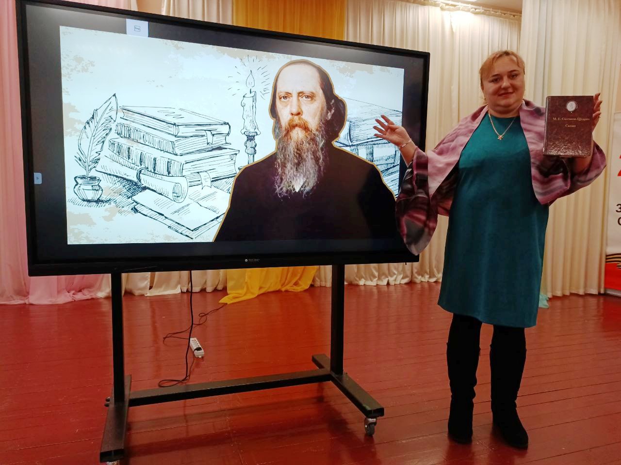В ходе литературного часа был сделан краткий обзор некоторых произведений писателя. Отдельно был произведен акцент на сказки, в которых высмеиваются человеческие пороки. Вниманию школьников была предложена викторина, которая проверила знание сказок, которых школьники уже изучили в рамках школьной программы: «Дикий помещик», «Премудрый пескарь», «Повесть о том, как один мужик двух генералов прокормил».