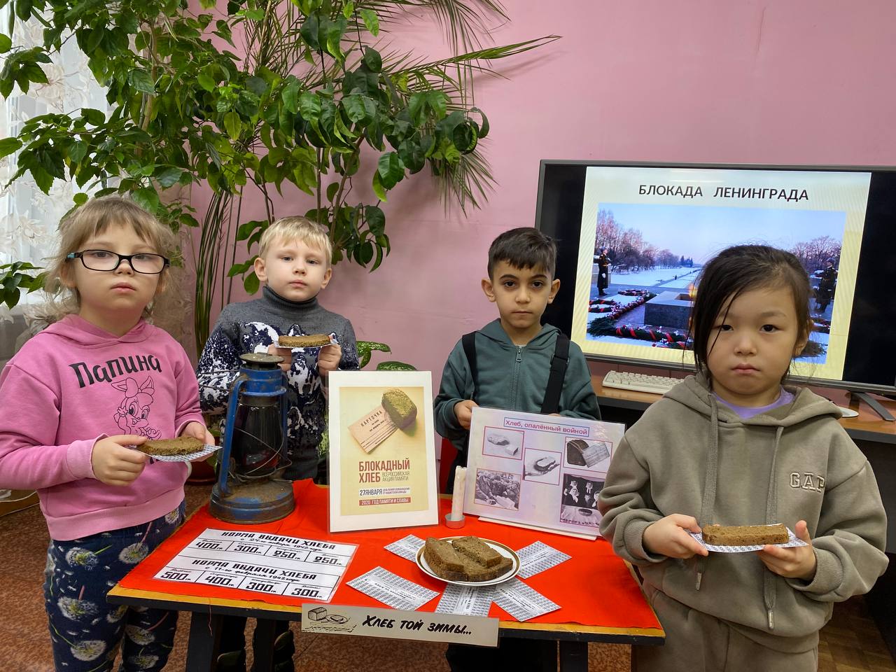 27 января, ко Дню снятия блокады Ленинграда, специалисты библиотеки-филиала № 2 провели урок мужества «Хлеб той зимы» для воспитанников детского сада № 55.