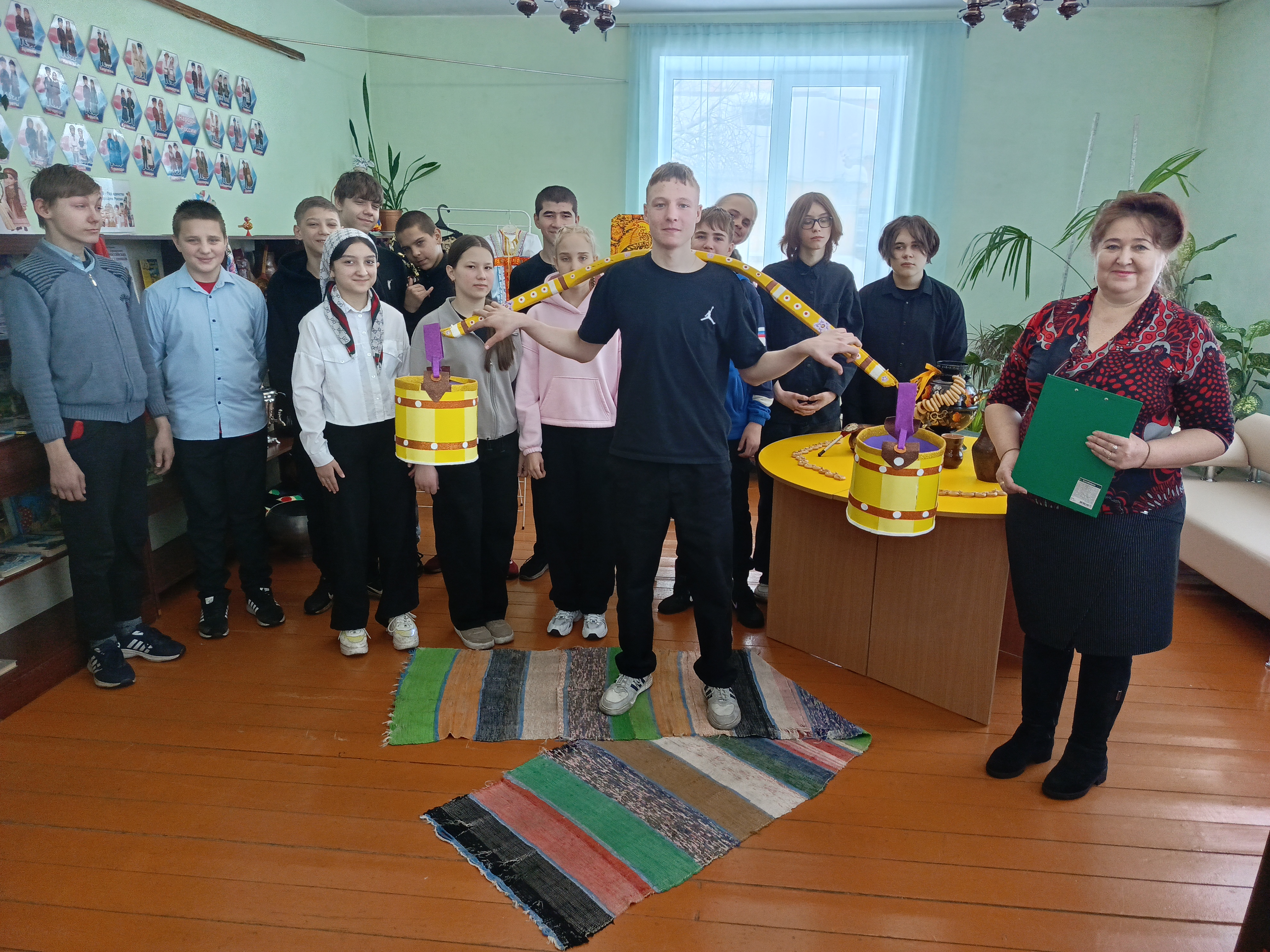 28 января специалисты детской библиотеки-филиала № 6 провели фольклорные посиделки «Кладовая народного творчества» для держателей Пушкинской карты, учащихся школы № 35.