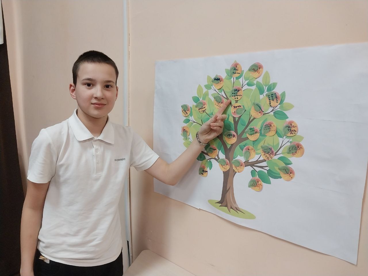 Старшеклассникам было предложено произнести на армянском языке несколько выражений. А затем, прикрепить к «дереву дружбы» «плоды абрикоса» - символа Армении. На абрикосах из бумаги дети написали пожелания для всех народов мира.