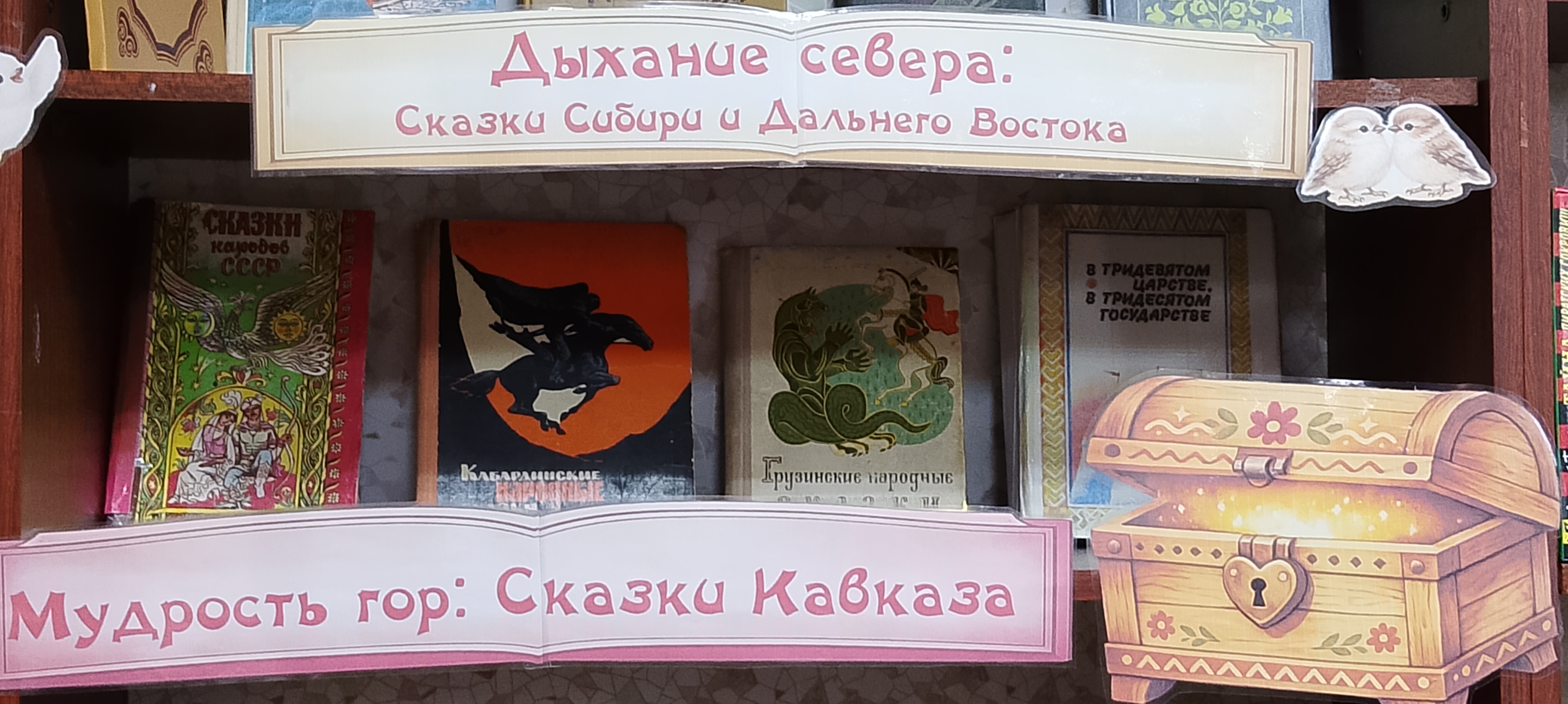 В Год единства народов России на детском абонементе сельской библиотеки-филиала № 10 оформлена книжная иллюстративная выставка «Сказки, в которых живет Россия». Книжная экспозиция приглашает читателей в увлекательное путешествие от заснеженной тундры до кавказских гор.