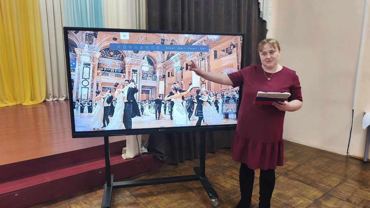 Участники вечера погрузились в эпоху XIX и XX веков. Музыкальная атмосфера, созданная благодаря звучанию красивейших вальсов великих русских композиторов: М. Глинки, С. Прокофьева, П. Чайковского и других, смогли передать трепет и волнение, которые испытывали накануне балов герои классических произведений. Школьники погрузились в атмосферу классического бала, изучив основы бального этикета и светского дресс-кода. Прозвучали отрывки из известных литературных произведений, в частности из романа Льва Толстого «Война и мир», где особое внимание уделяется описанию первого вальса героини Наташи Ростовой.