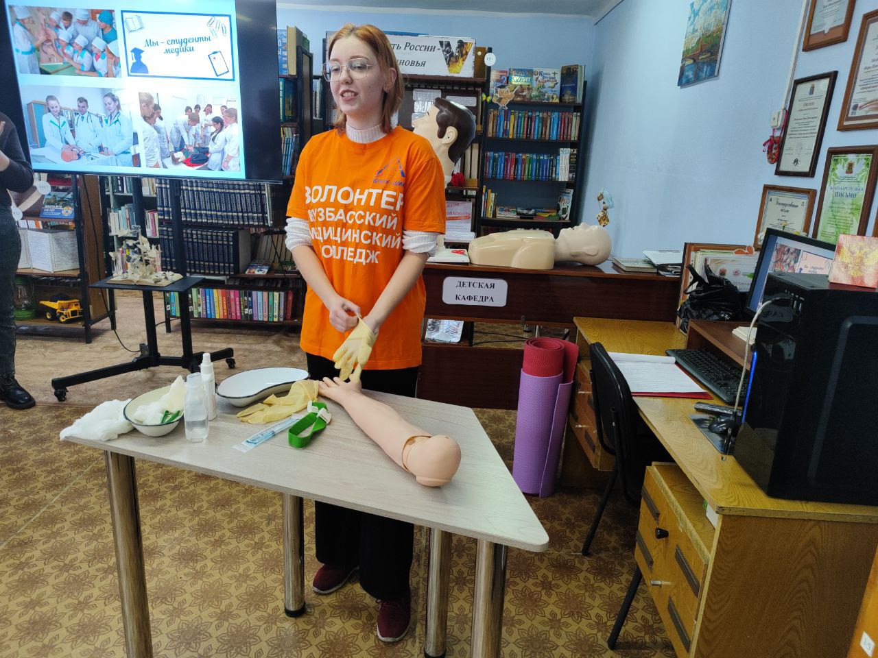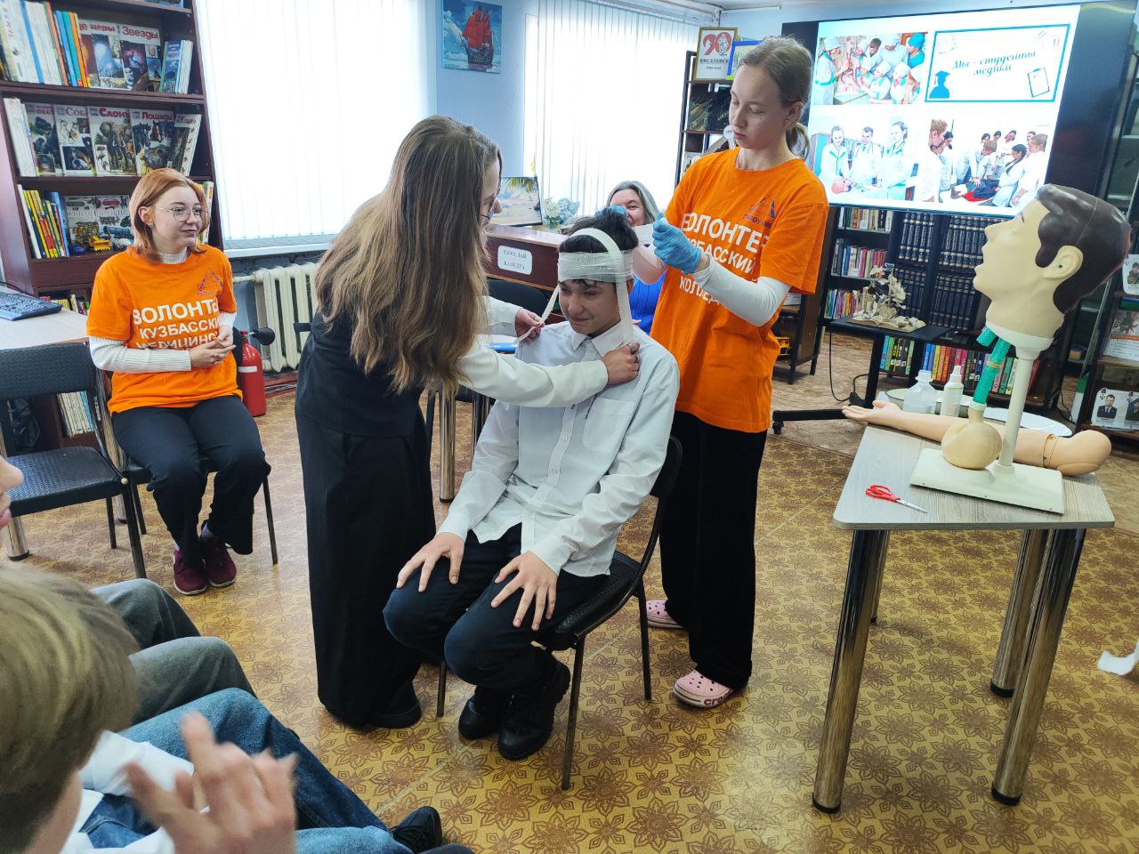 Самым ожидаемым событием на мероприятии стало выступление студентов Кузбасского медицинского колледжа из города Прокопьевска. Руководитель волонтёрской группы Ксения Петровна Уварова познакомила девятиклассников с особенностями профессиональных программ обучения, правилами поступления в медицинский колледж и ответила на многочисленные вопросы. Юношам и девушкам представилась уникальная возможность вместе со студентами попробовать сделать реанимацию, поставить внутривенный укол и научиться перевязывать раны. Девчата признались присутствующим, что упорство, трудолюбие и ответственность помогают преодолевать трудности в учёбе. А главное в их работе – любовь к людям и готовность помогать тем, кто нуждается в помощи.