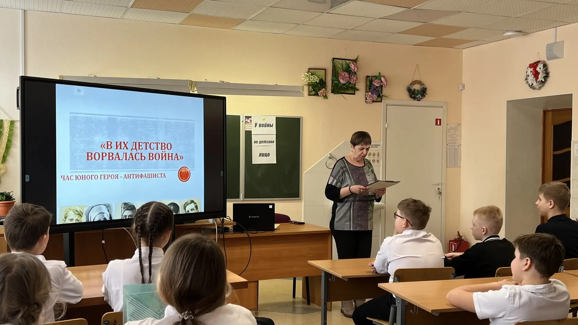 Школьники посмотрели видео презентацию «В их детство ворвалась война». Имена юных героев Великой Отечественной войны, таких как Марат Казей, Валя Котик, Леня Голиков, Вася Коробко, Володя Дубинин и Зина Портнова, навечно увековечены в памяти народа. Их мужество и самоотверженность стали примером несгибаемой воли и преданности Родине.