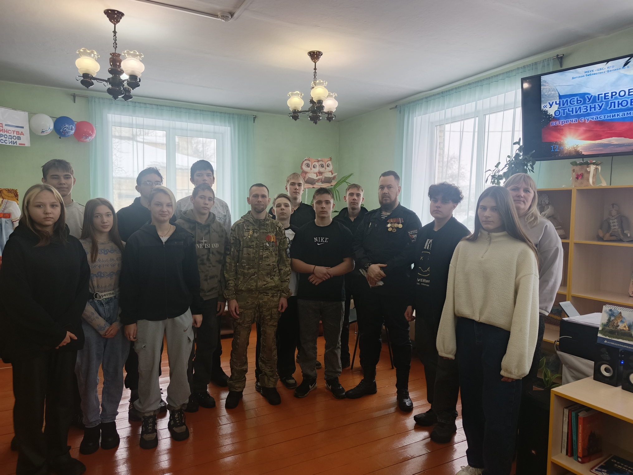 10 февраля в детской библиотеке-филиале № 6 для учащихся 9 «Б» класса школы № 35 состоялась встреча с участниками СВО «Учись у героев Отчизну беречь». Целью мероприятия стало патриотическое воспитание подрастающего поколения на примере мужества и самоотверженности защитников Отечества, не просто рассказать о подвигах героев, а передать эстафету ценностей: любви к Отечеству, чувства долга, взаимовыручки и личной ответственности за страну – от тех, кто защищает ее сегодня, тем, кто будет делать это завтра.