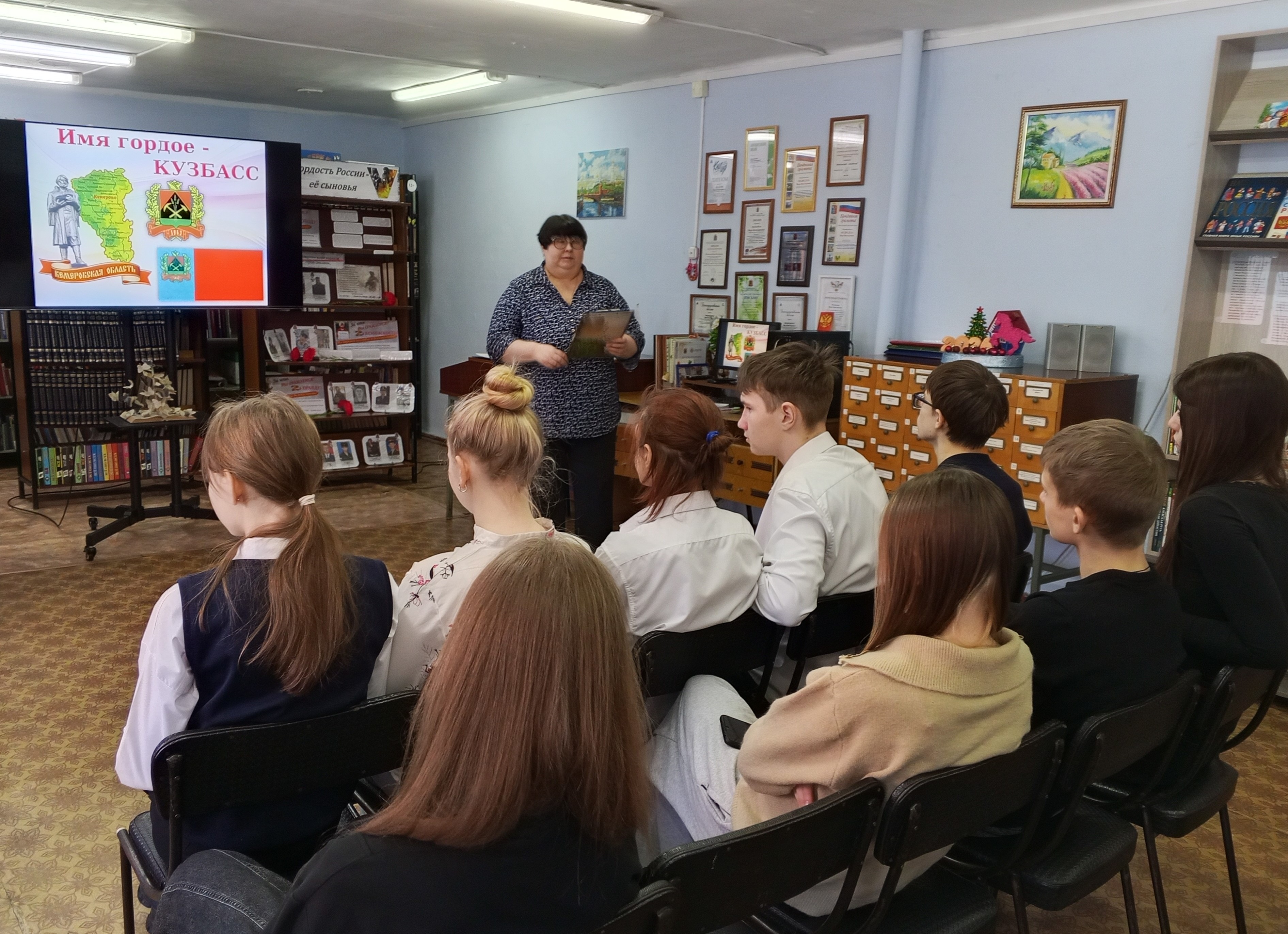 В рамках федерального проекта Пушкинская карта и программы «Сибирь. КУЗБАСС» в библиотеке-филиале № 1 состоялась краеведческая программа «Имя гордое – Кузбасс». На мероприятии присутствовали девятиклассники школы № 11.