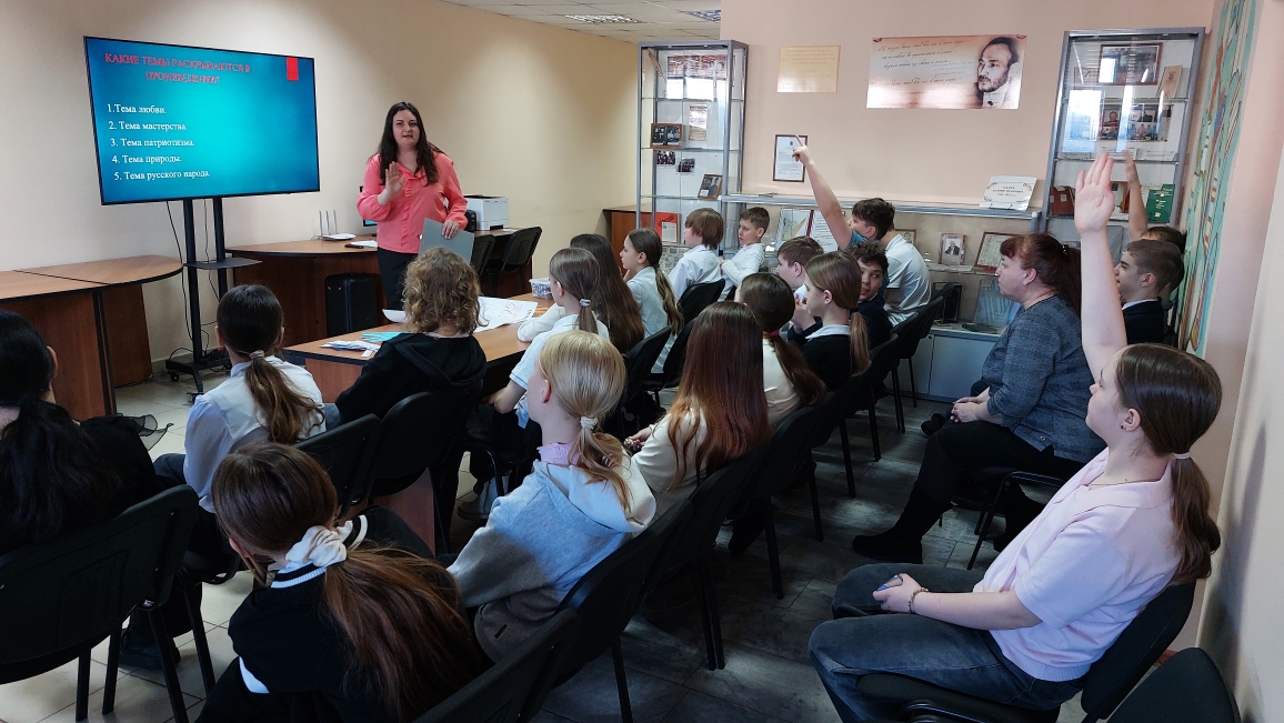 Для школьников был проведен брейн-ринг «Народный умелец», который позволил систематизировать и обобщить в игровой форме знания сюжета, интересных фактов из биографии писателя, помог вспомнить исторические лица, которые встречаются в сказе, а также выполнить словарную работу по списку устаревших слов.