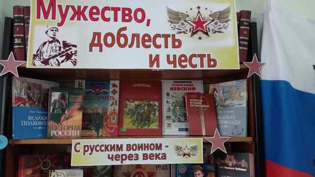 В преддверии Дня Защитника Отечества в Центральной детской библиотеке оформлена книжно-иллюстративная выставка «Мужество, доблесть и честь». Цель выставки – воспитание патриотизма и уважения к истории России и ее героям, а также формирование чувства гордости за тех, кто стоял и сегодня стоит на страже безопасности и суверенитета страны.