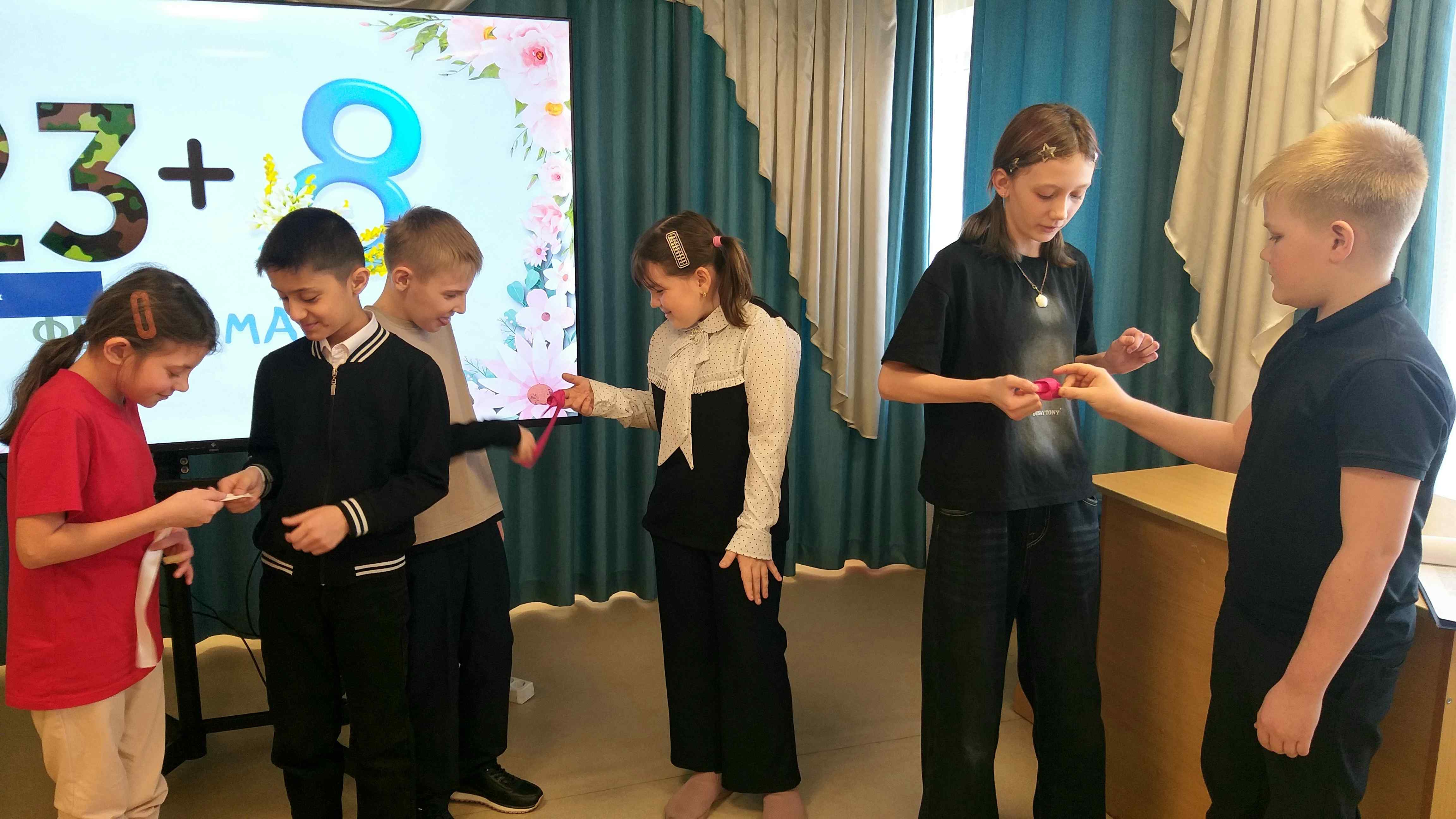 Команды девочек и мальчиков сразились в честном и веселом поединке, который стал настоящим праздником дружбы и взаимопонимания. Девочки подготовили трогательные и искренние стихи, которые они с выражением прочитали для своих одноклассников-мальчиков.