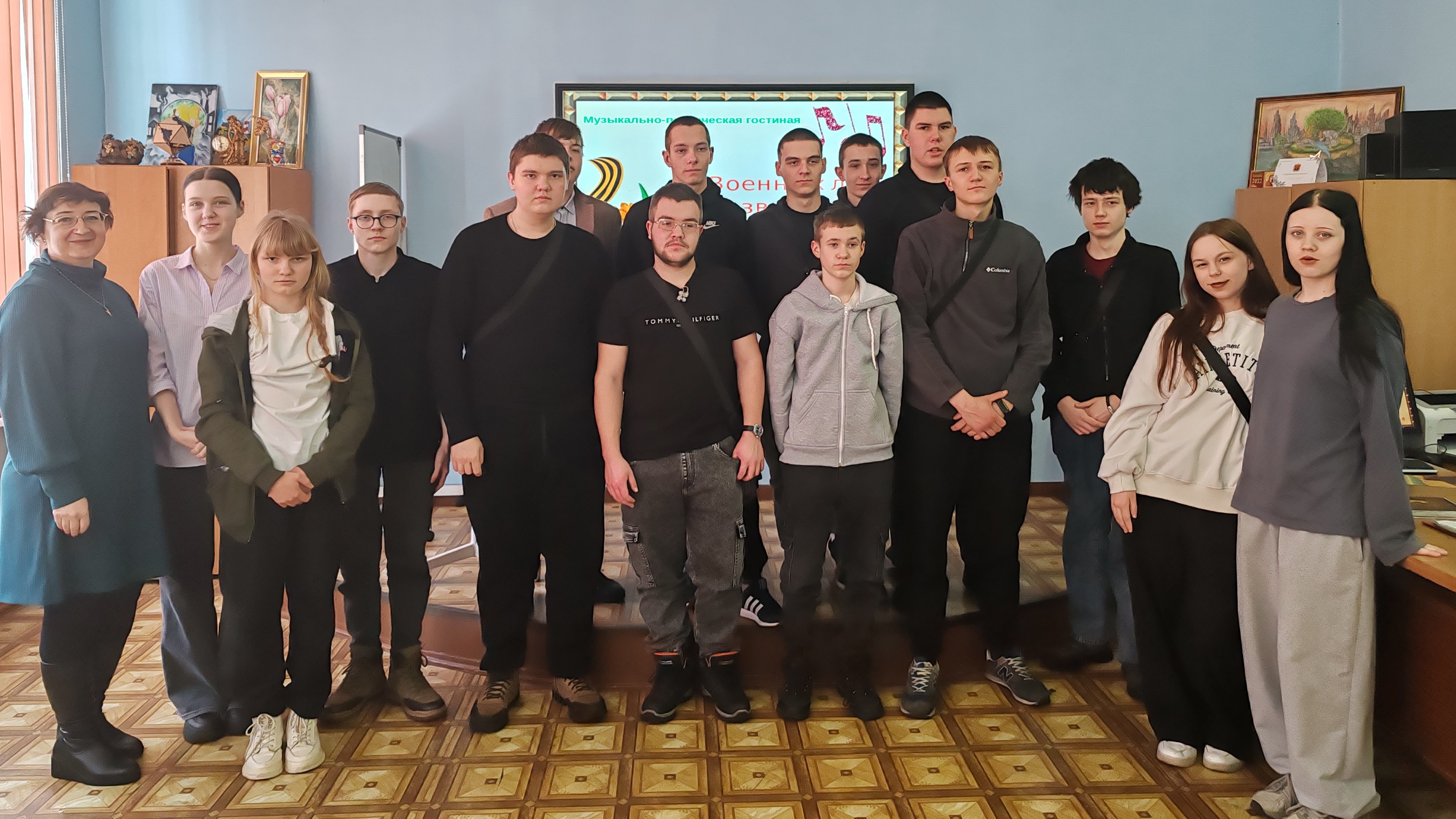 17 марта библиотека-филиал № 1 пригласила студентов Прокопьевского аграрного колледжа на музыкально-поэтическую гостиную «Военных лет звучат мотивы», организованную в рамках программы «Пушкинская карта».