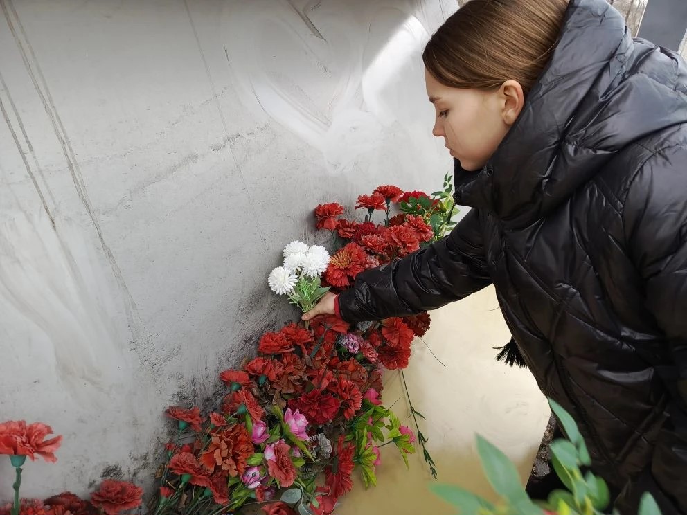 В атмосфере глубокой скорби и уважения была объявлена минута молчания в память о воинах, павших в жестоких боях с фашистскими оккупантами. В знак безмерного уважения к их самоотверженности и мужеству, школьники возложили к подножию мемориала цветы.