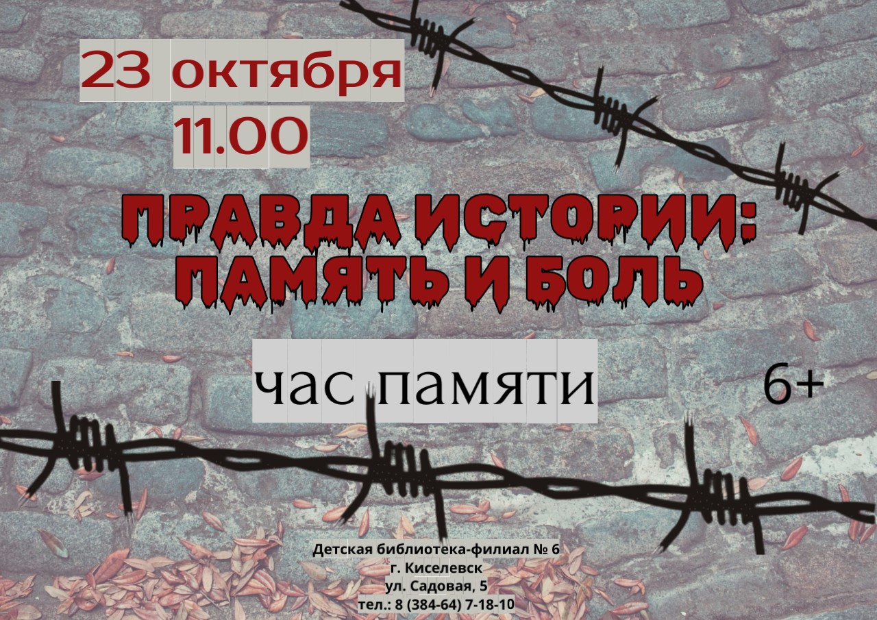 Участники совершат экскурс в историю события Дня памяти жертв политических репрессий. Узнают о тех, кто был подвергнут репрессиям, отправлен в исправительно-трудовые лагеря, в ссылку, лишён жизни. Присутствующим расскажут о тяжёлом времени – о годах сталинского культа, беззакониях и гонениях, о стойкости и преданности своей стране людей, прошедших через испытания. Особое внимание будет уделено писателям, побывавшим в жерновах репрессий и рассказавшим в своих произведениях об этой трагической странице в истории нашей страны.