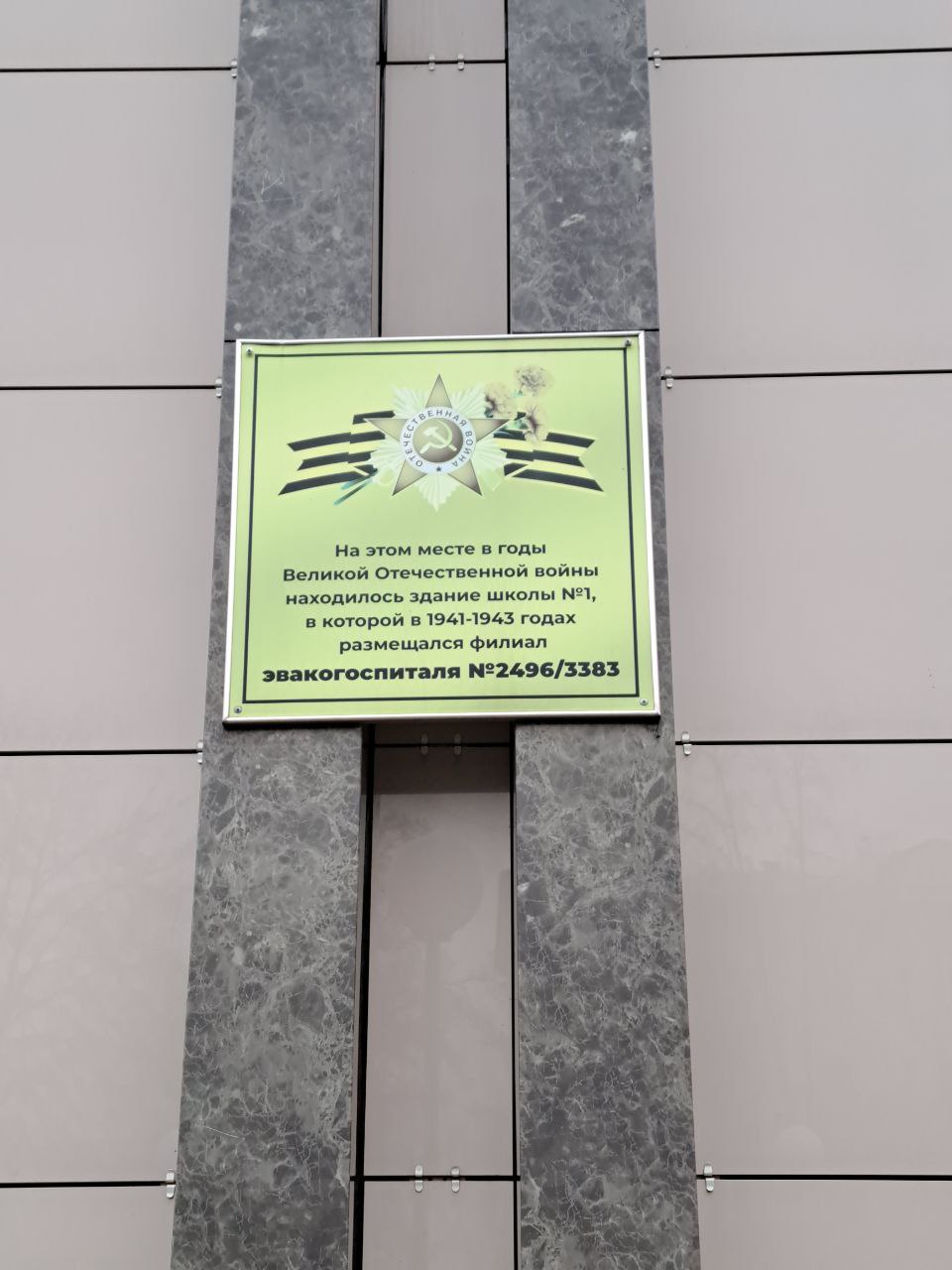 В 2020 году на здании МФЦ установили новую мемориальную доску, посвященную эвакогоспиталю 2496/3383, вместо той, что была установлена на школе в 1985 году.