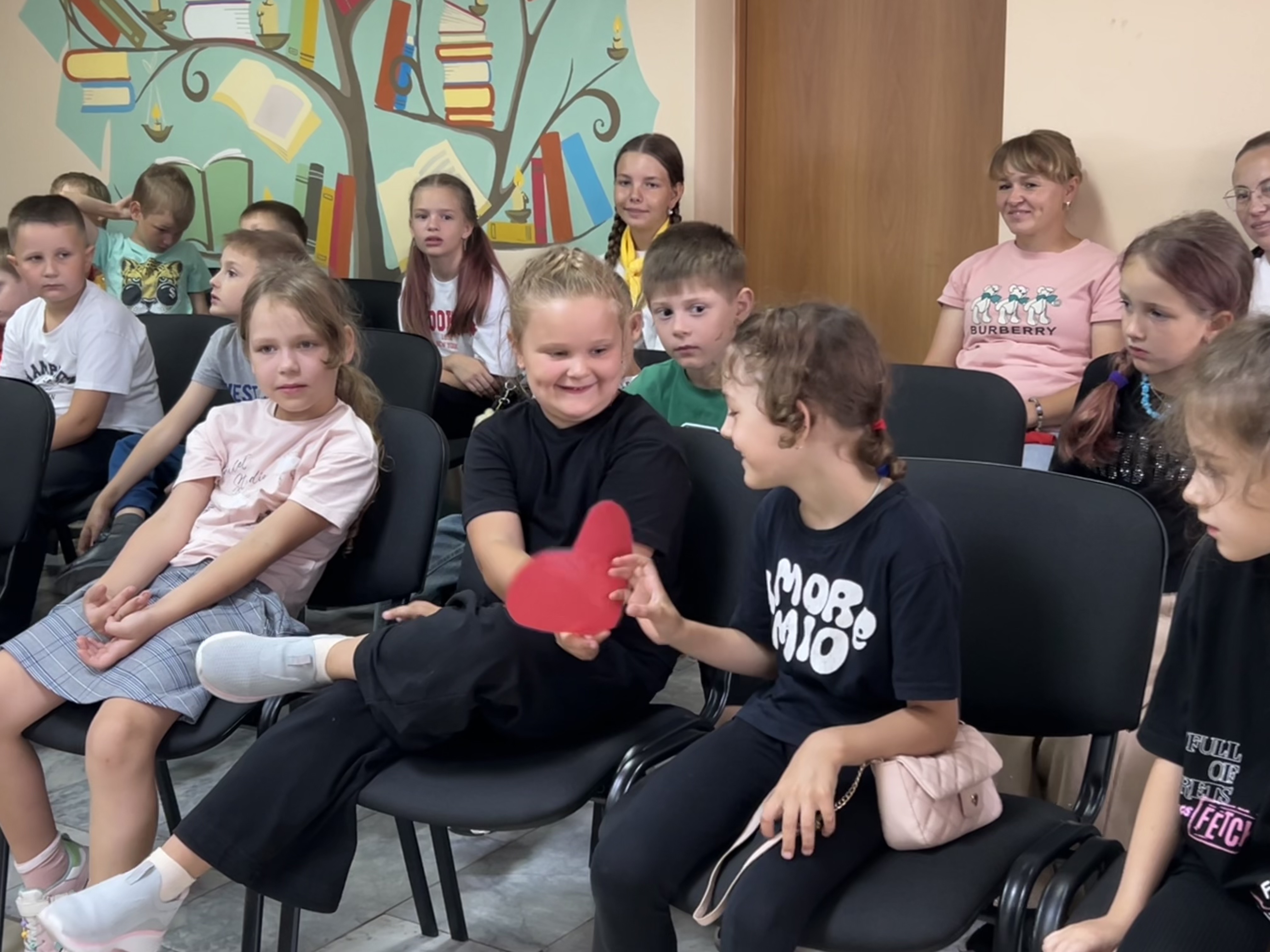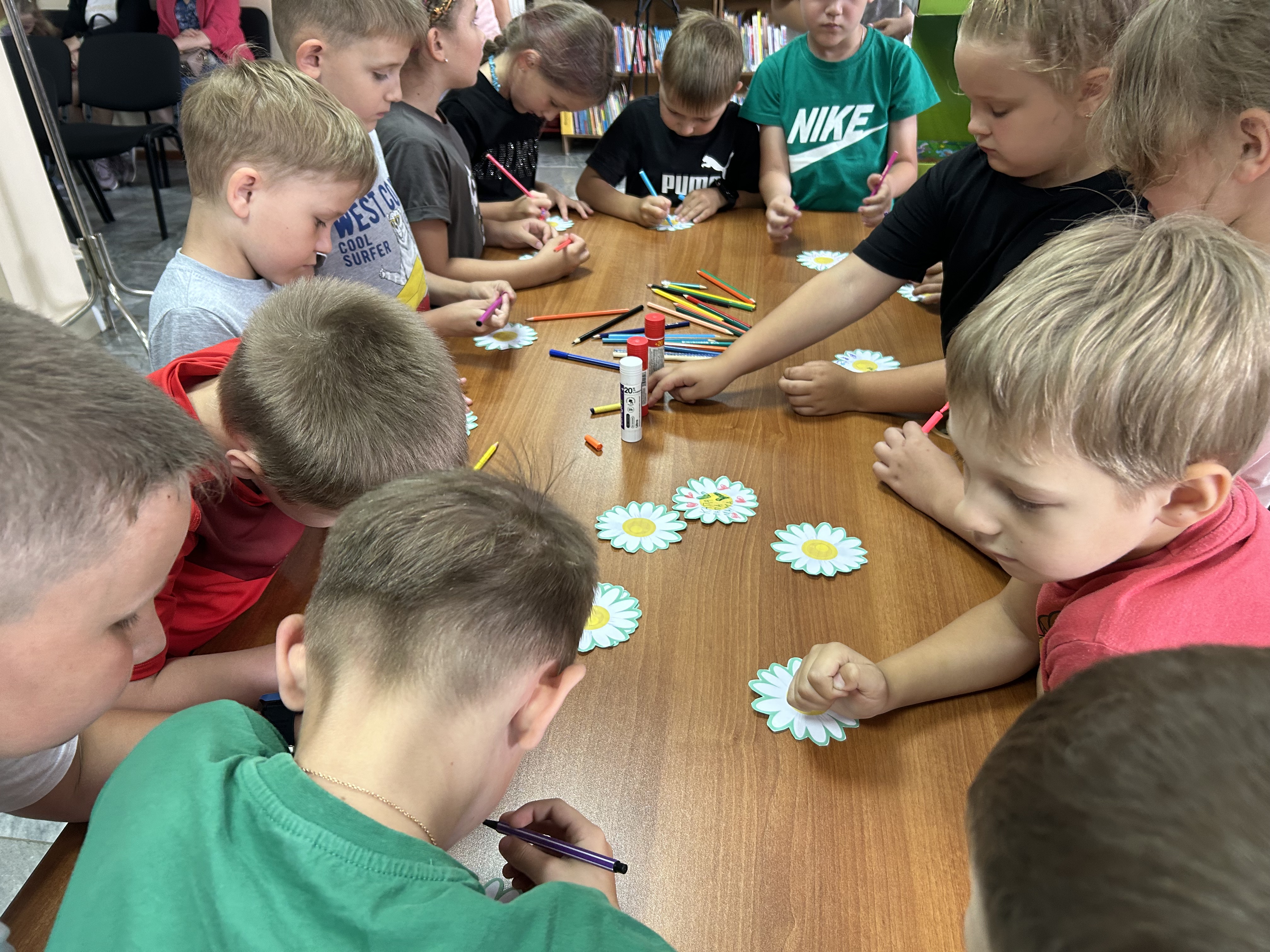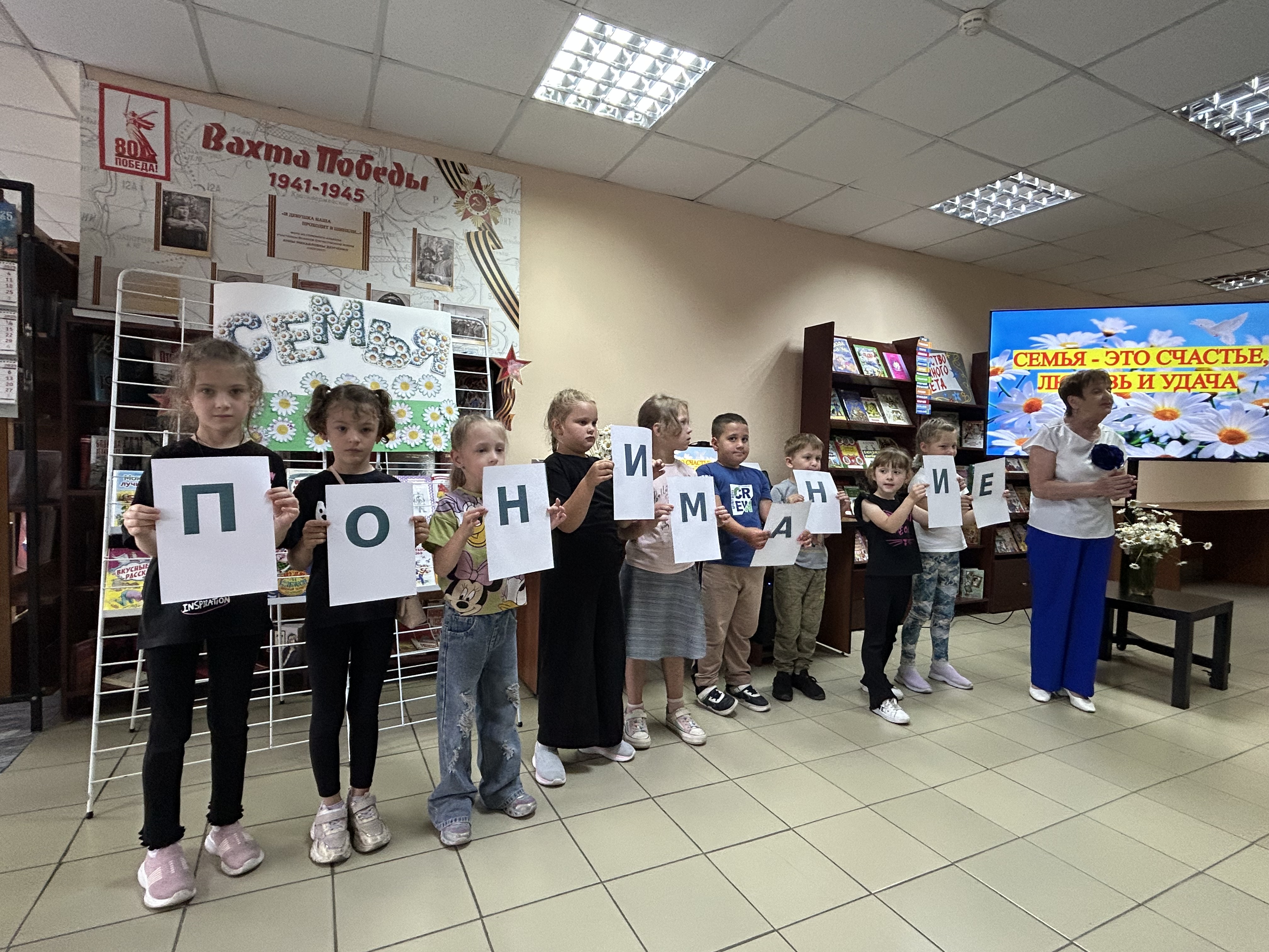 Очень тепло и трогательно прошла игра «Сердечко», где каждый участник сказал добрые слова в адрес друга. В завершение праздника был создан плакат «Семья», где ребята разместили свои ромашки с пожеланиями ко Дню семьи, любви и верности. Все вместе ребята стали участниками «Ромашкового флешмоба». Вместе с библиотекарем они раздавали горожанам настоящие цветы – ромашки с пожеланиями мира, радости и счастья каждой семье.