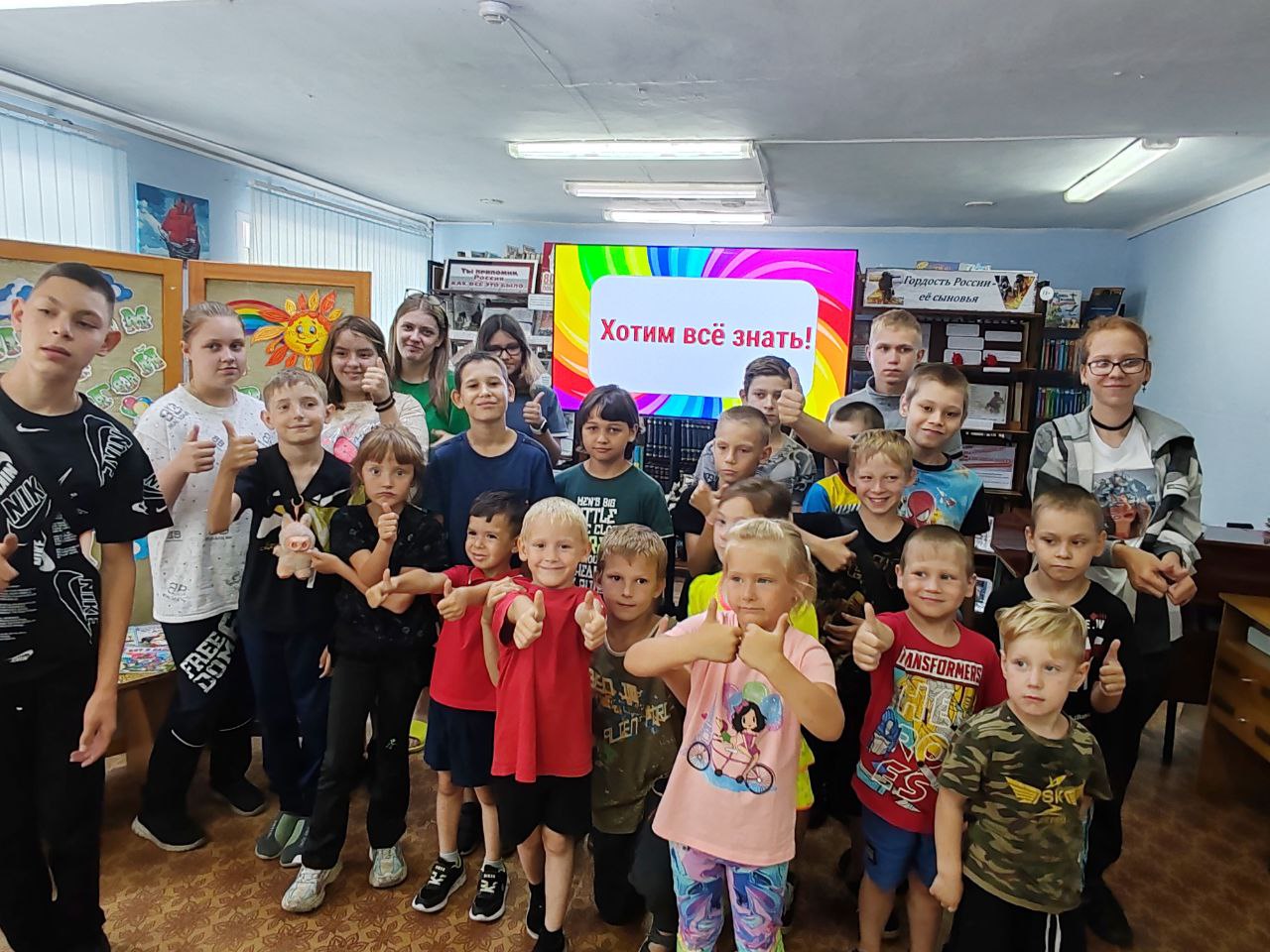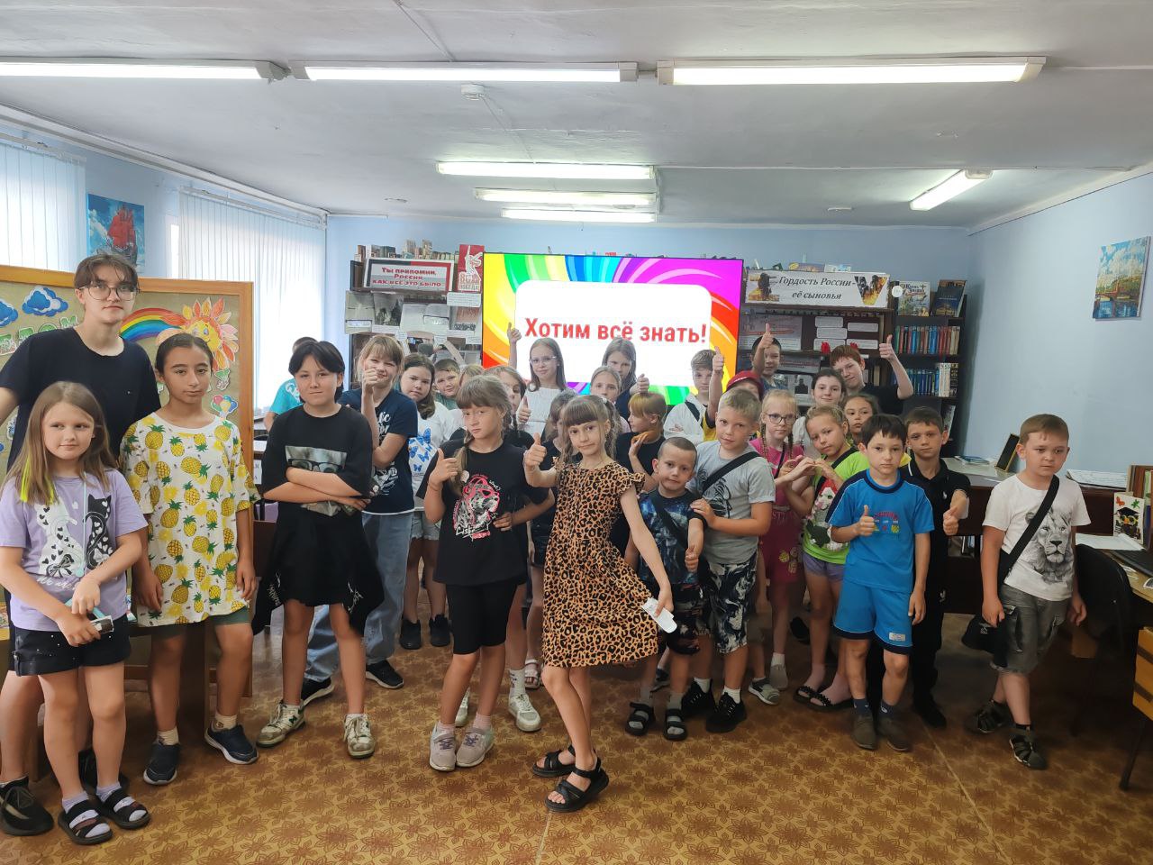 11 июля в рамках программы «С книгой открываем мир» в библиотеке-филиале № 1 прошла гонка за знаниями «Хотим всё знать!» для воспитанников социально-реабилитационного центра «Доверие» и для ребят летнего лагеря дневного пребывания школы № 11.