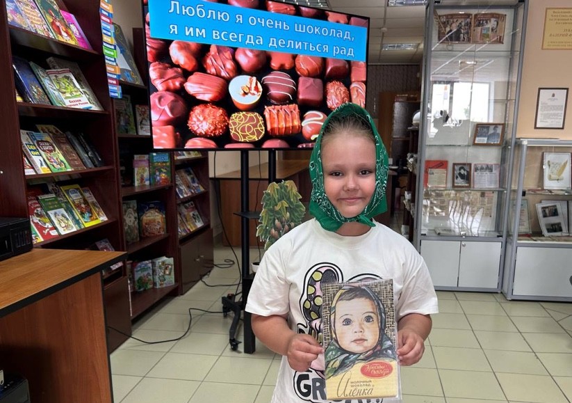 Ребята совершили виртуальную экскурсию по Музею истории русского шоколада и активно участвовали в интерактивной викторине «Его Величество – Шоколад». Очень азартно и весело прошел аукцион слов, составленных из слова «шоколад». Под громкие аплодисменты зрителей выбирали самую похожую на Аленку с обложки шоколада девочку.