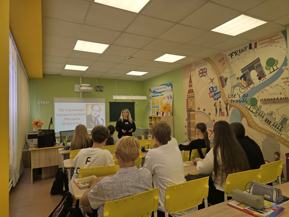 22 сентября специалисты Центральной городской библиотеки в рамках сетевой региональной литературной программы «Писатели Кузбасса о войне» организовали литературный вечер-портрет «По страницам жизни и подвига Михаила Небогатова» для учащихся 9 «А» Лицея №1.