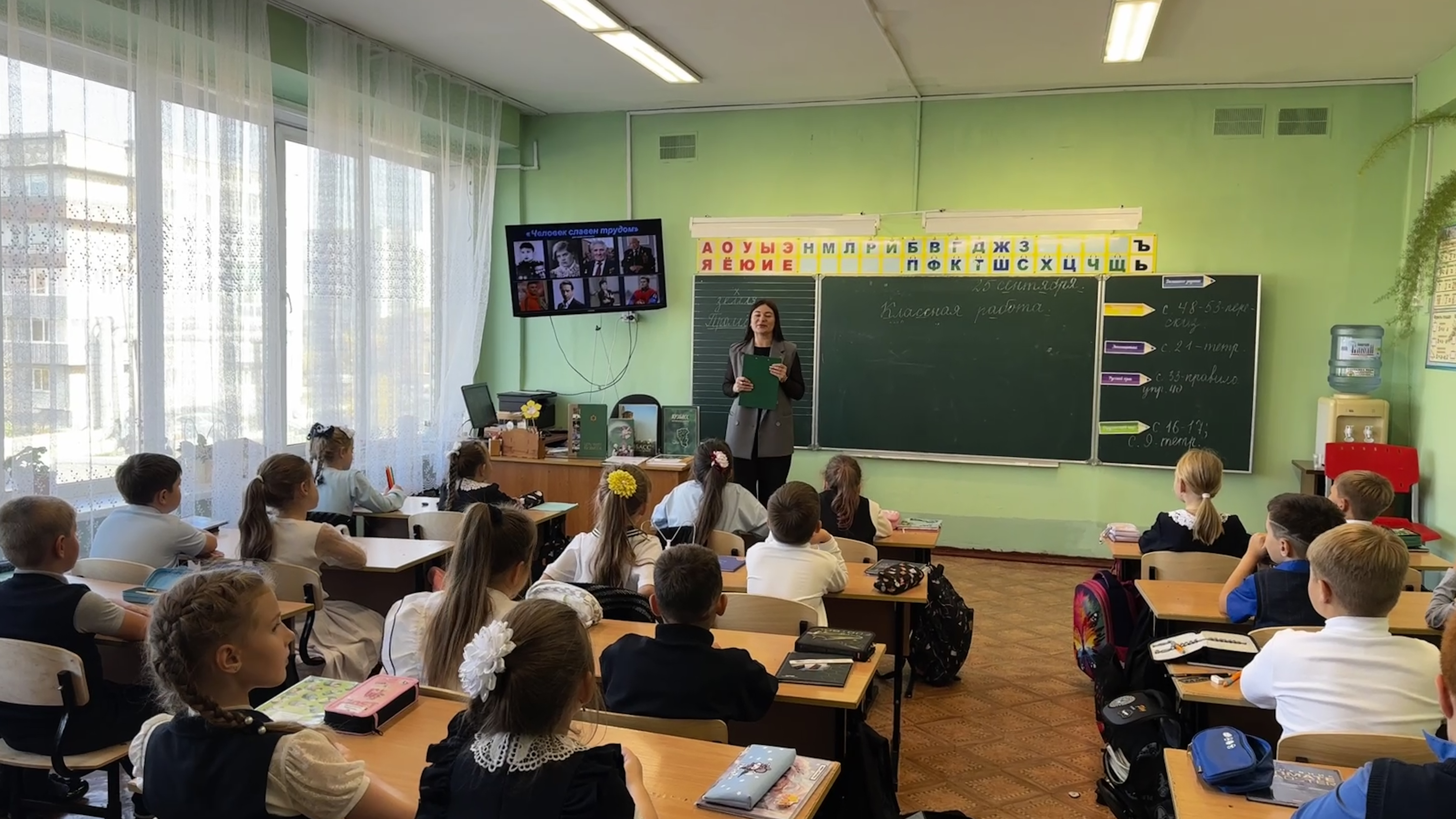 Школьникам была представлена мультимедийная презентация, посвященная Кемеровской области. Она содержала красочные фотографии природы Кузбасса, промышленных предприятий и современные городские пейзажи. Ведущая рассказала детям о том, что Кузбасс – это край богатый природными ресурсами, прежде всего, углем. Что именно благодаря труду шахтеров и других рабочих, Кузбасс стал важным промышленным регионом России. Она подчеркнула, что труд каждого человека важен и ценен, независимо от его профессии.