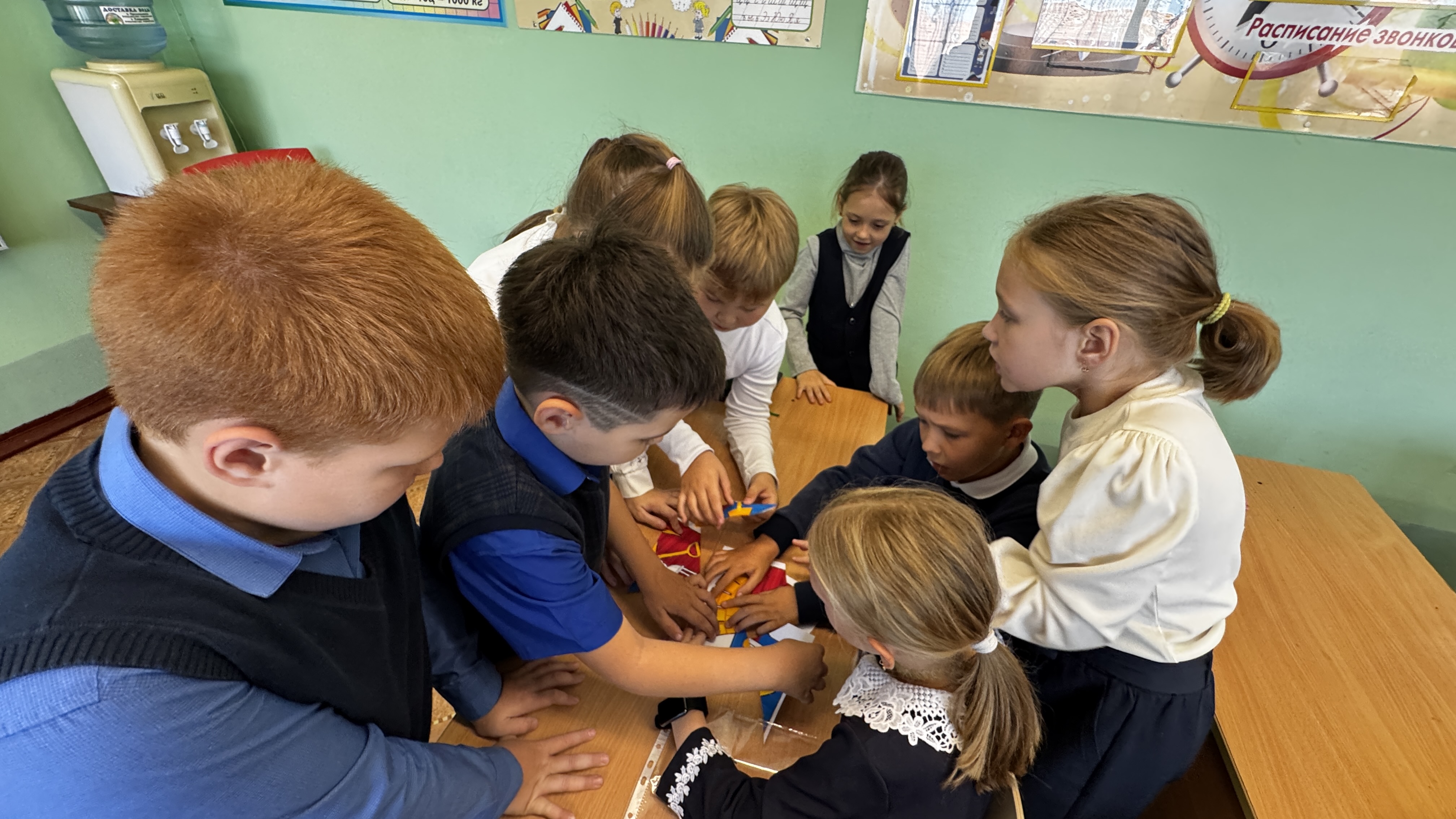 Дети приняли участие в интерактивных заданиях. Они, разделившись на команды, собирали герб родного Киселевска. С увлечением подбирали фрагменты, обсуждали символику, а потом с гордостью представляли свои работы. Ребята играли в игру «Узнай место»: на экране появлялись фотографии разных районов и достопримечательностей города, а дети узнавали знакомые места и рассказывали о них.