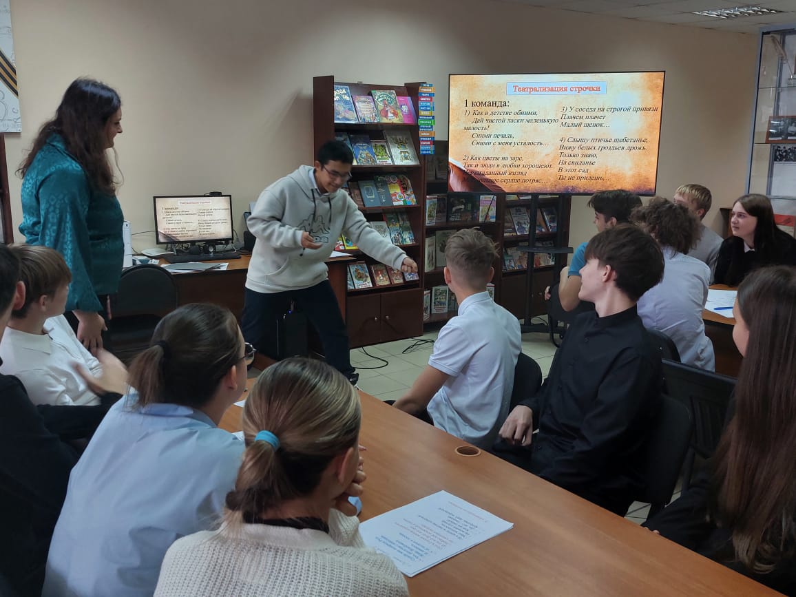 Чтобы лучше прочувствовать поэзию нашего земляка, гости мероприятия разделились на команды и соревновались в литературных конкурсах. В первом конкурсе «Подскажи словечко» ребята на миг превратились в поэтов и старались закончить известные стихотворения рифмой Василия Федорова. Второй конкурс «Путаница» заставил ребят подумать о правильном порядке строк стихотворения. «Фантазии по мотивам» подарили возможность создать свое произведение, вдохновившись образами и мотивами изучаемых стихотворений. Во время «Театрализации строчки» представители каждой команды инсценировали строки из произведений, а в конкурсе «Есенин Сибири» старшеклассники увлеченно находили схожие черты в творчестве известных поэтов.