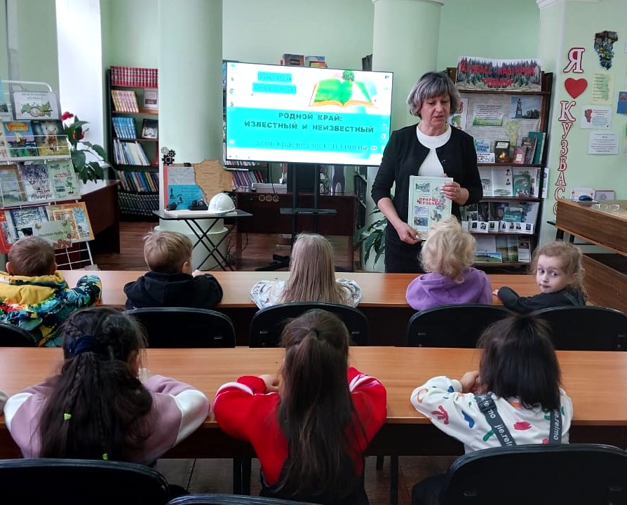 Для дошкольников детского сада № 13 провели познавательную программу «Природа родного края». Из рассказа библиотекаря дети узнали о том, какие деревья и цветы растут в нашем крае, какие животные, птицы и рыбы обитают в заповедных местах Кузбасса. Видео-показы, просмотры книг и фотографий помогли детям увидеть обитателей тайги и леса.