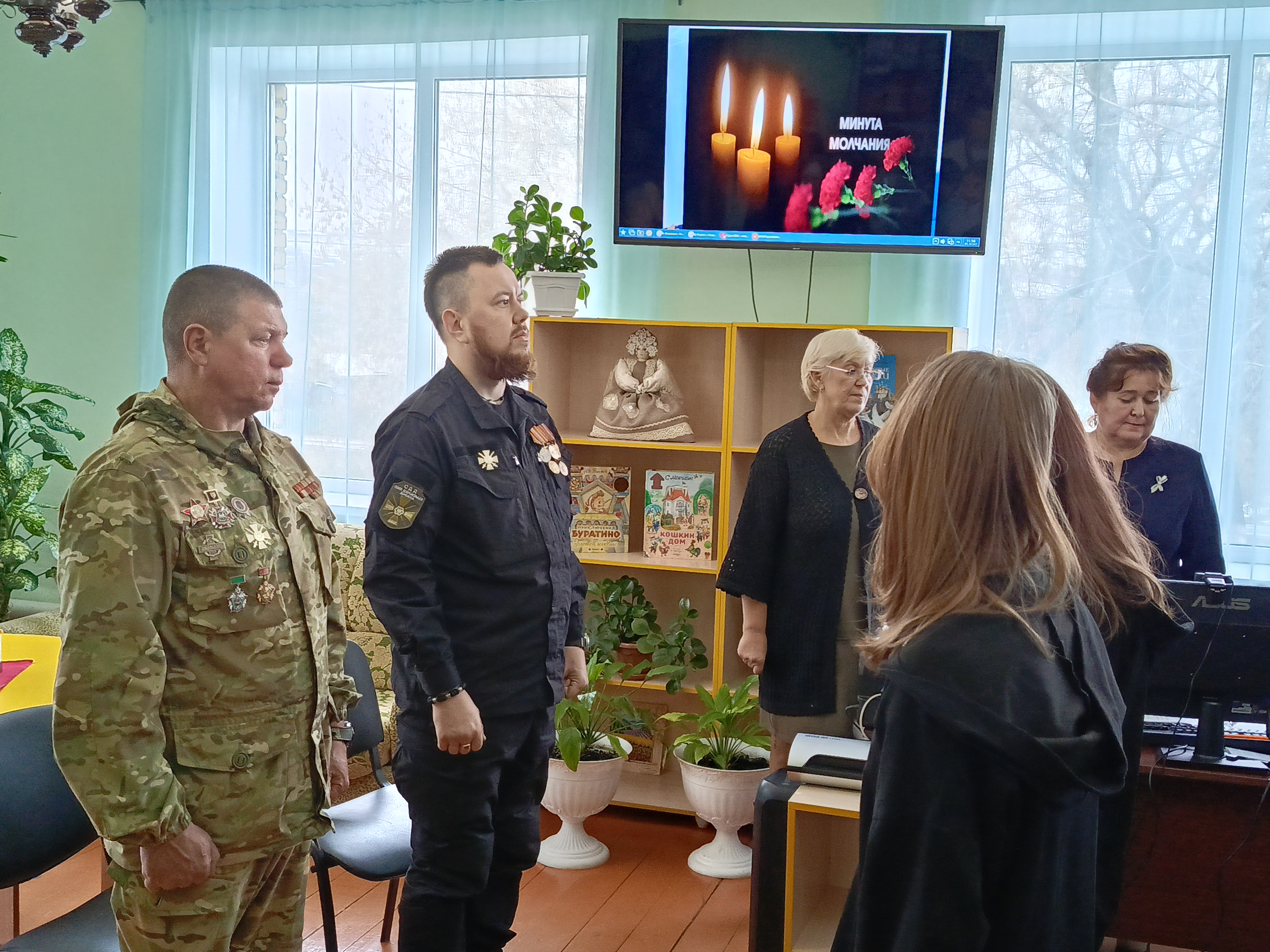 Патриотический урок не оставил никого равнодушным. Ребята задумались о главных ценностях: долге, чести, любви к Родине. Минутой молчания присутствующие почтили память погибших воинов-кузбассовцев, с честью выполнивших долг перед Отечеством. Память о подвигах земляков будет жить в сердцах благодарных потомков.
