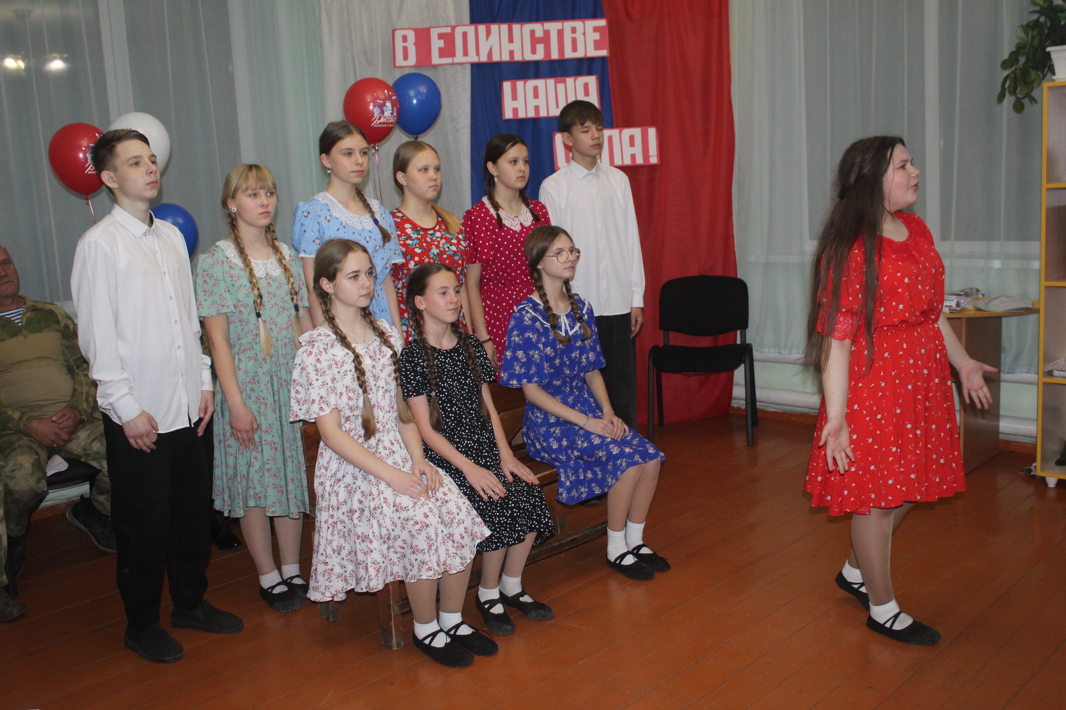 Насыщенную культурную программу вечера, раскрывающую культурное многообразие России, открыл флешмоб «Хоровод единства» (хореограф С.Б. Мишина, клуб «Шахтера»).