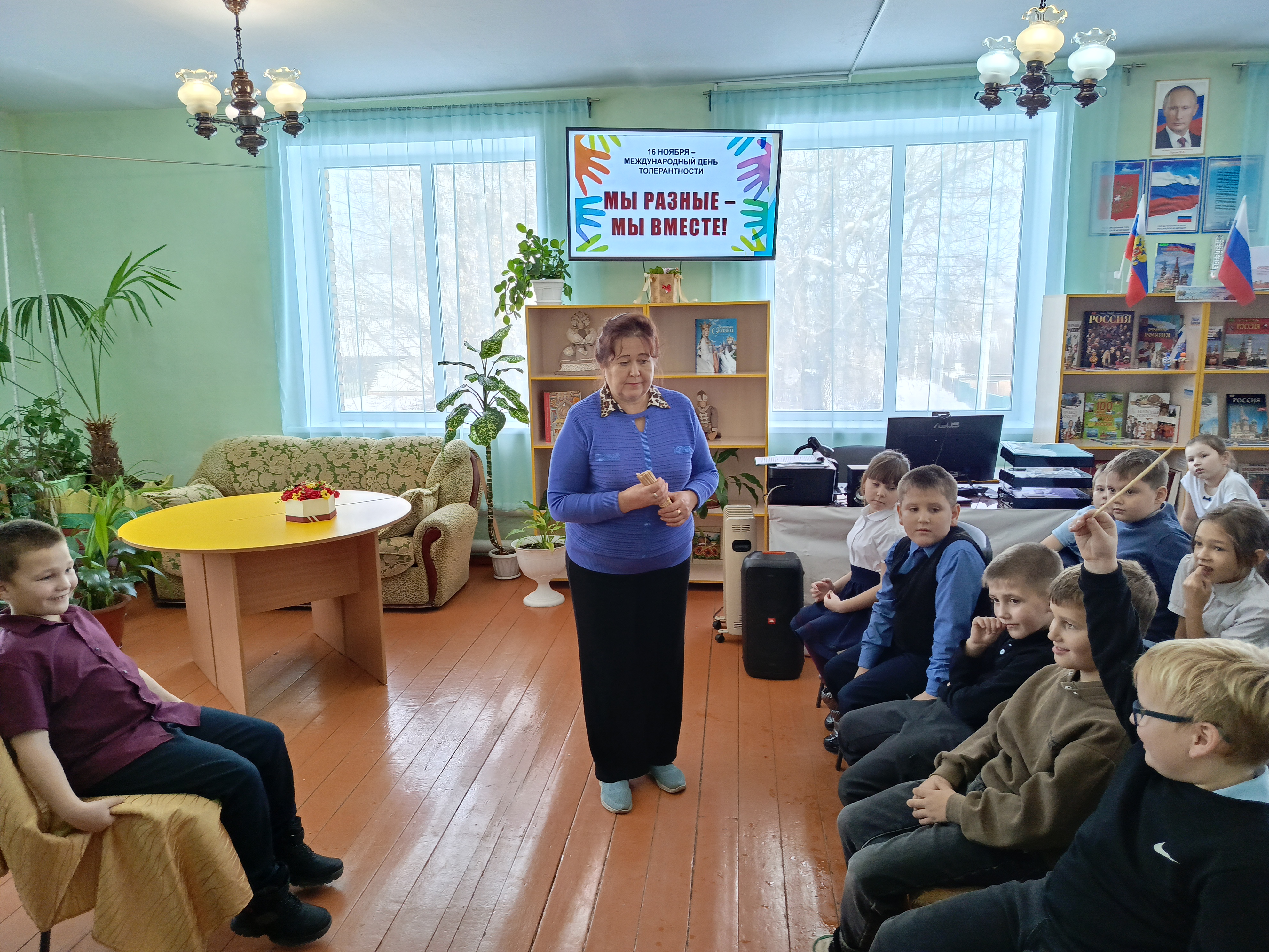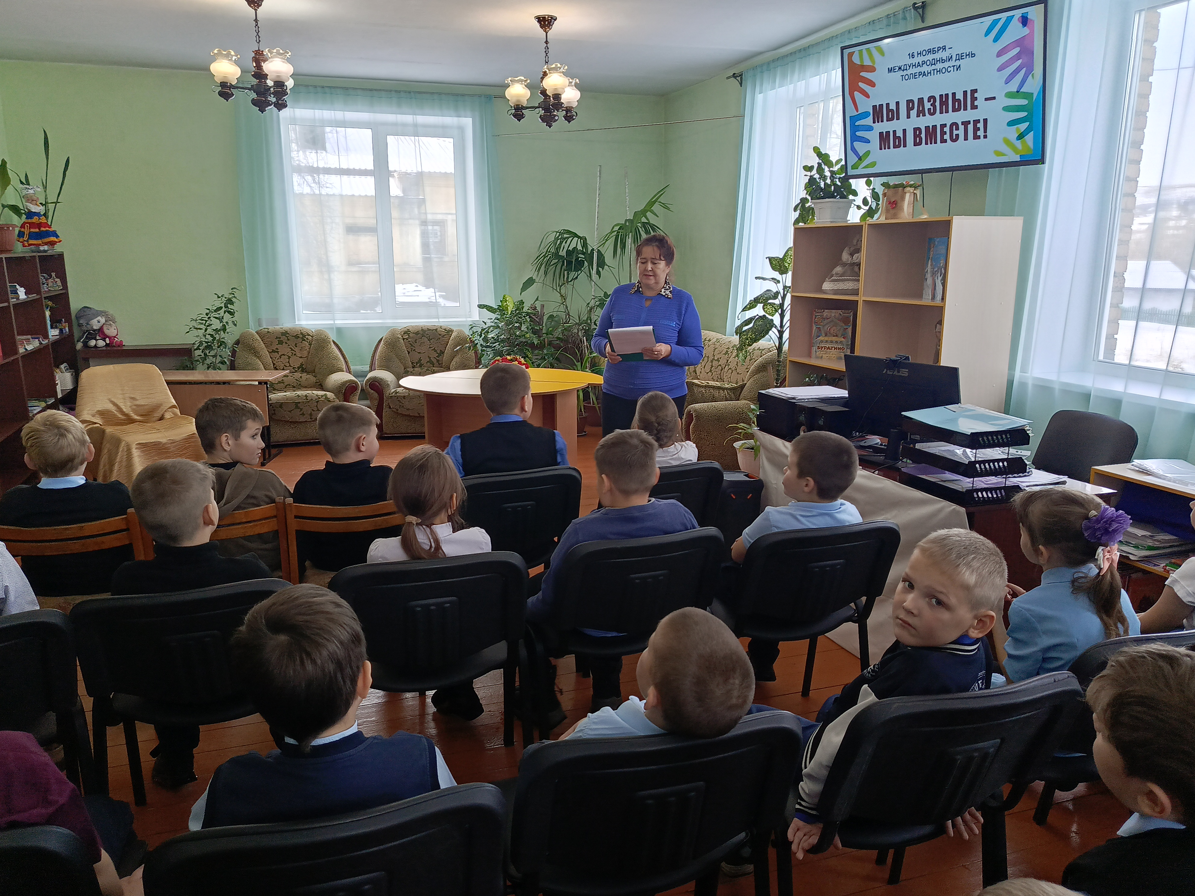 11 ноября специалисты детской библиотеки-филиала № 6 провели час общения «Вместе и дружно – вот что нам нужно»,приуроченный к Международному дню толерантности для учащихся 2 «а» класса школы № 35.