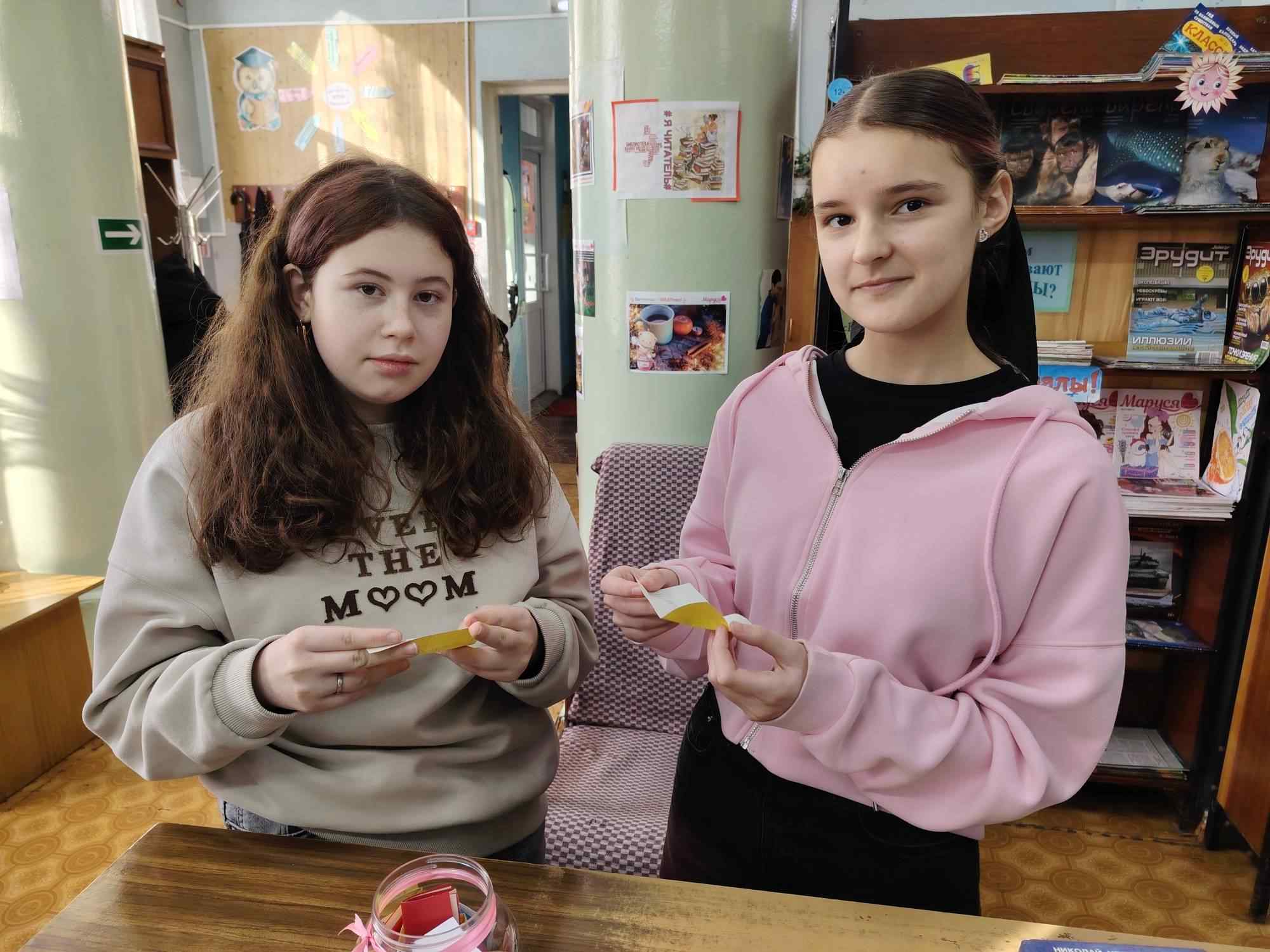 Первоклассники школы № 14 приняли участие в уроке доброты «Твори добро на благо людям». Во время необычного урока ребята познакомились с понятием доброты и обсудили, какие качества должен иметь добрый человек. Дети размышляли о том, какие добрые поступки могут совершать люди для того, чтобы делать этот мир лучше. Для укрепления понимания доброты библиотекарь познакомила первоклассников с притчей Сухомлинского В. А. «Обыкновенный человек», главная мысль которой заключается в том, что человек — это тот, кто без напоминания и просьб придёт на помощь. Далее ребятишки с удовольствием играли в игры «Комплименты», «Сказочные герои» и изготовили сердечки с добрыми словами.