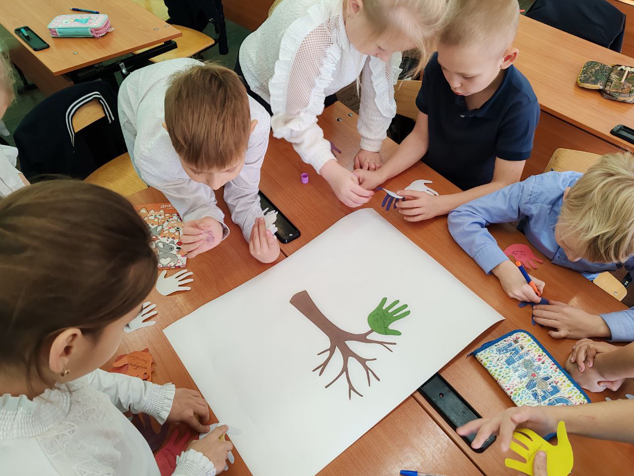 В завершение мероприятия мальчишки и девчонки собрали «Дерево толерантности». На заранее подготовленных ладошках они написали качества, которые, по их мнению, должен иметь толерантный человек. Листья «дерева» наполнились словами, такими как «сочувствие», «доброта», «уважение», «терпимость» и «поддержка». Каждый ребенок вложил частичку себя в это общее дело, что стало ярким завершением мероприятия.