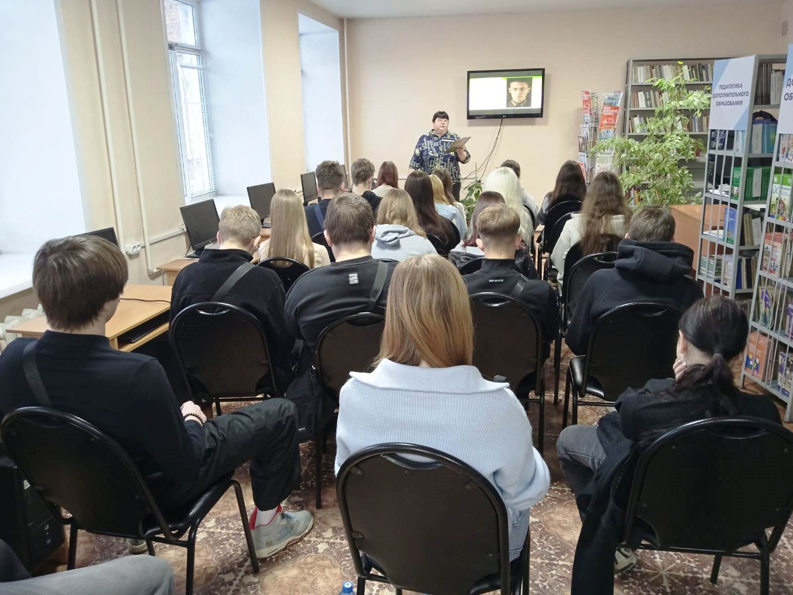 18 ноября в рамках Недели молодёжной книги, Года Е. С. Буравлёва в Кузбассе и программы «Сибирь.КУЗБАСС» специалисты библиотеки-филиала № 1 провели в Киселёвском педагогическом колледже литературную гостиную «Я мужество видел в лицо».