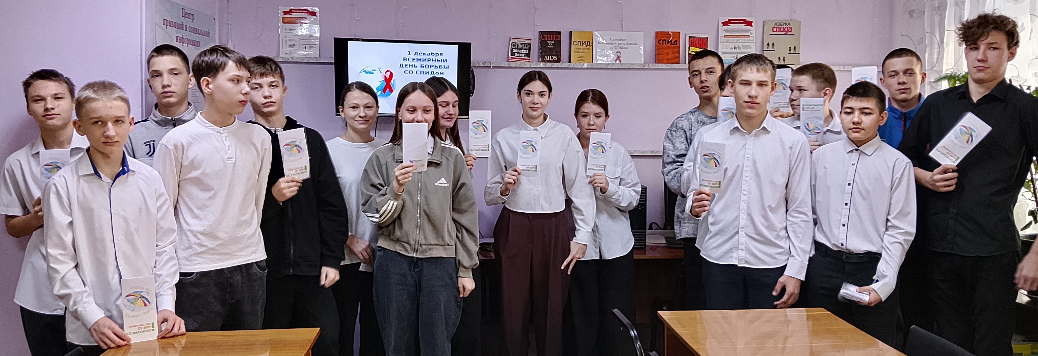Библиотекарь также поделилась актуальной информацией о ситуации с ВИЧ/СПИДом как в области, так и в нашем городе. Для проверки усвоенных знаний был проведен брейн-ринг, в котором активно участвовали все ребята. Это стало хорошим поводом для обсуждения важности осознания проблемы и ее влияния на каждого человека. Учащиеся сделали вывод, что данная проблема касается всех без исключения и пообещали контролировать свое поведение, а также помнить о рисках, связанных с ВИЧ. Таким образом, урок стал не только образовательным, но и важным шагом к формированию ответственного отношения к собственному здоровью и здоровью окружающих.