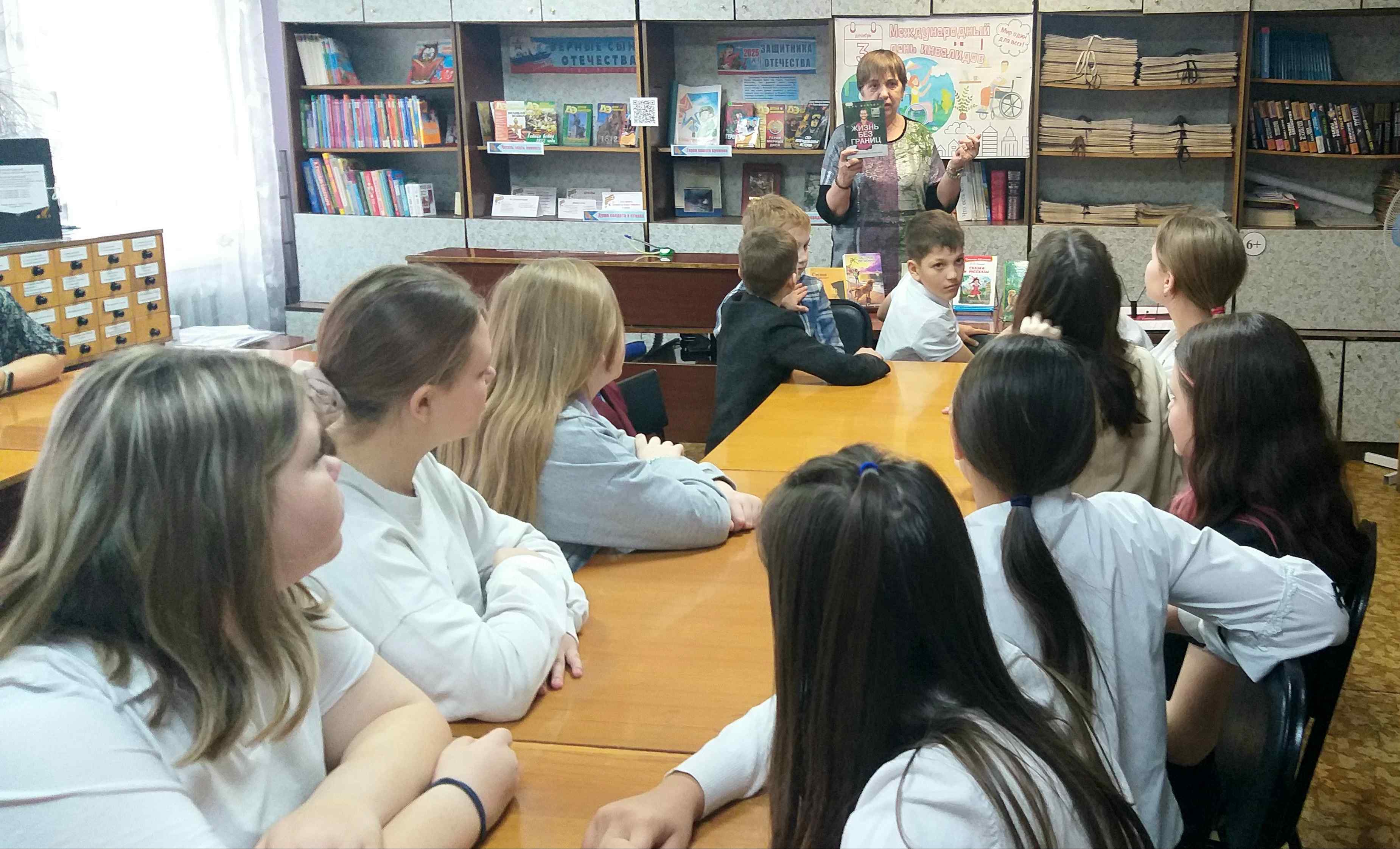 Центральной частью урока стало обсуждение этических норм. Школьники рассматривали конкретные ситуации: как предложить помощь незрячему человеку, как общаться с человеком на коляске, и почему не следует использовать жалостливые слова. Учащиеся активно высказывали свои мнения, признавая, что не знают, как себя вести, чтобы не обидеть собеседника. Библиотекарь прочитала рассказ Василия Сухомлинского «Мужчина без ноги». Школьники осудили поведение молодого человека, который не уступил место инвалиду в автобусе.